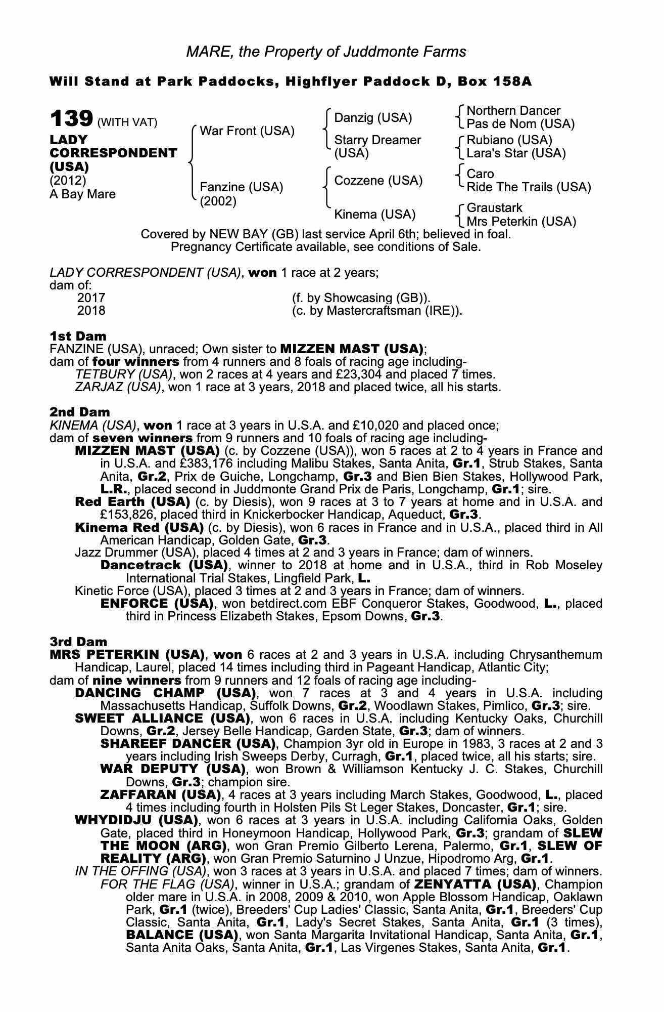 December Mare Sale 2020 lot 2009 Gellhorn (GB) (F. by Showcasing (GB)), Juddmonte Farms=>Mickley Stud 30,000 gns
