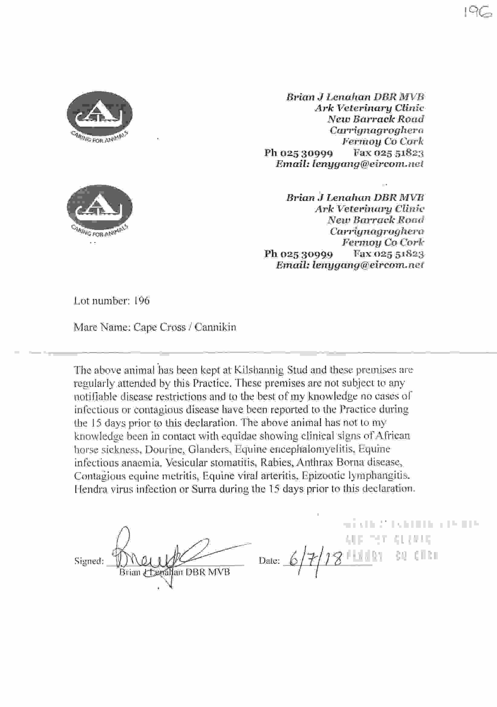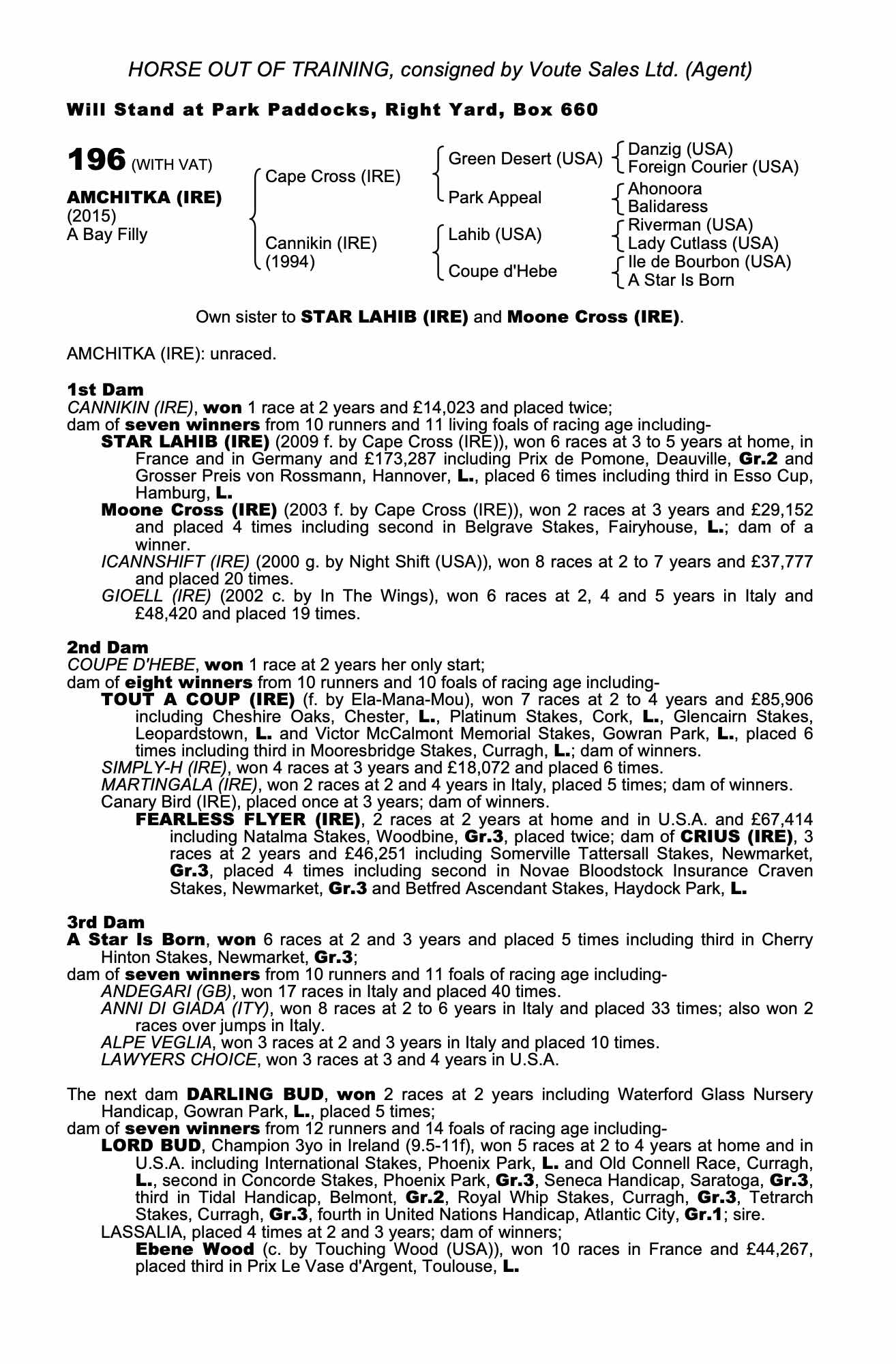 Consignor: Voute Sales Ltd. (Agent)