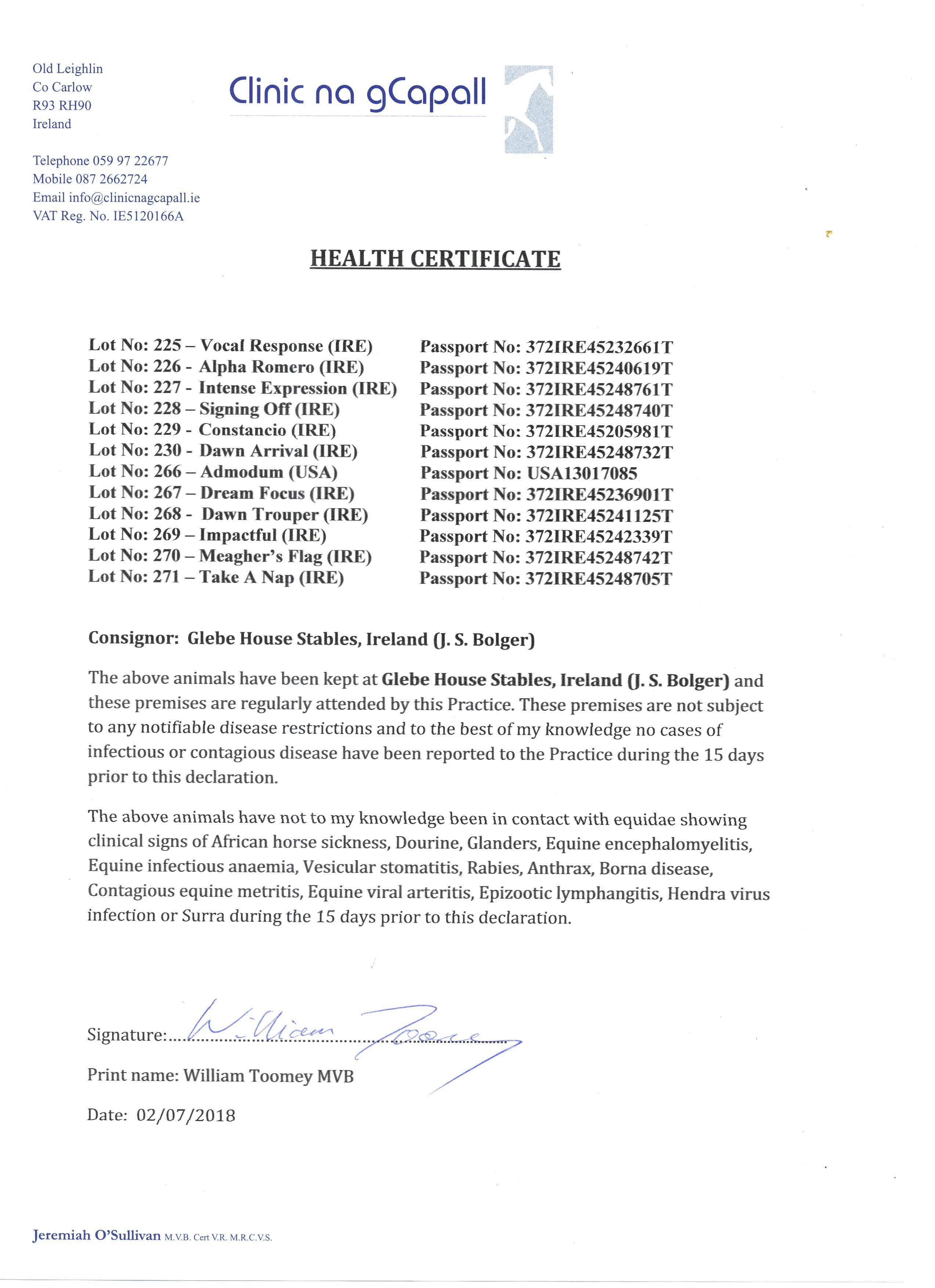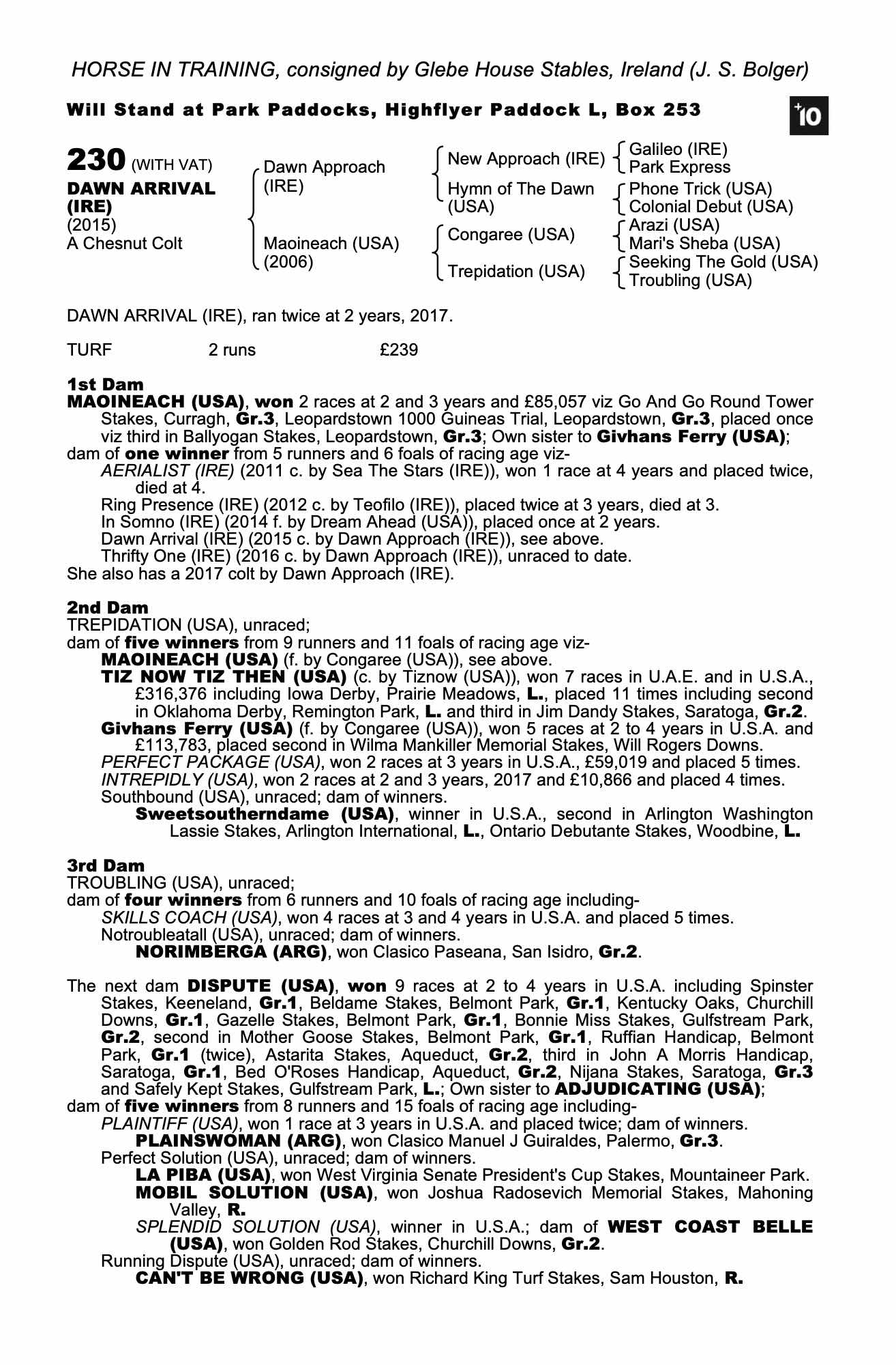 Consignor: Glebe House Stables, Ireland (J. S. Bolger)