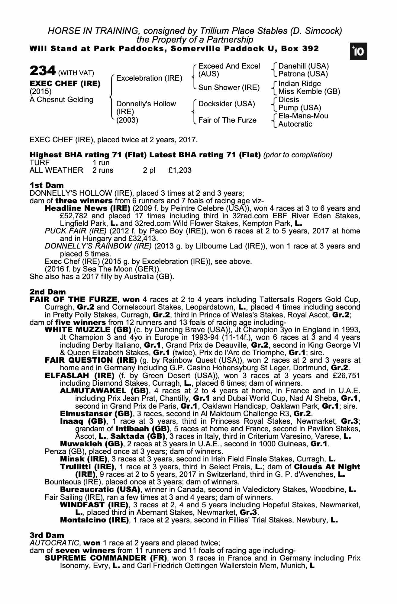 Consignor: Trillium Place Stables (D. Simcock)