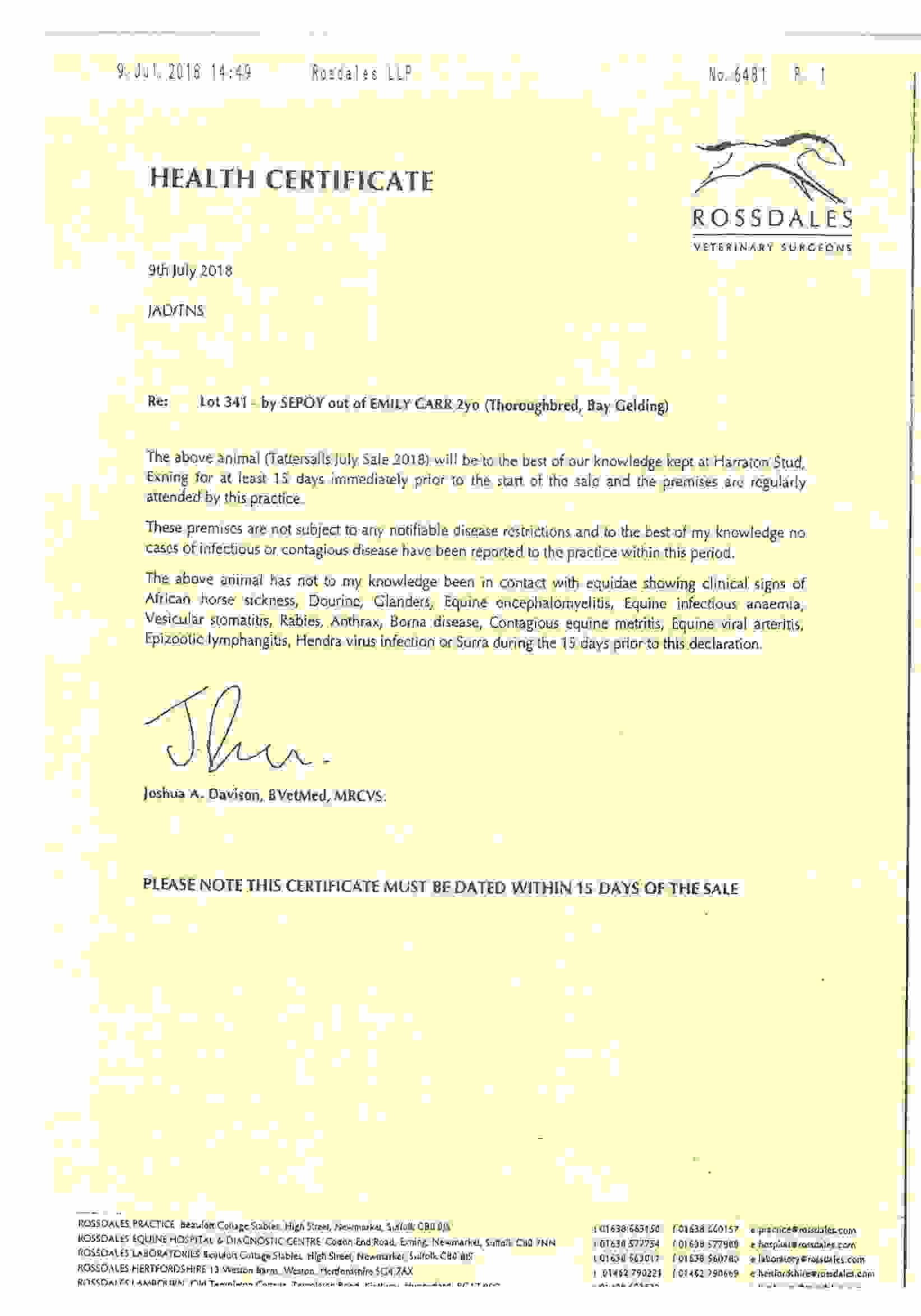 December Foal Sale 2018 lot 1228 F. by Footstepsinthesand (GB) 2018, Pattles Grove Stud Ltd.=>Derek Shaw Racing 5,000 gns
