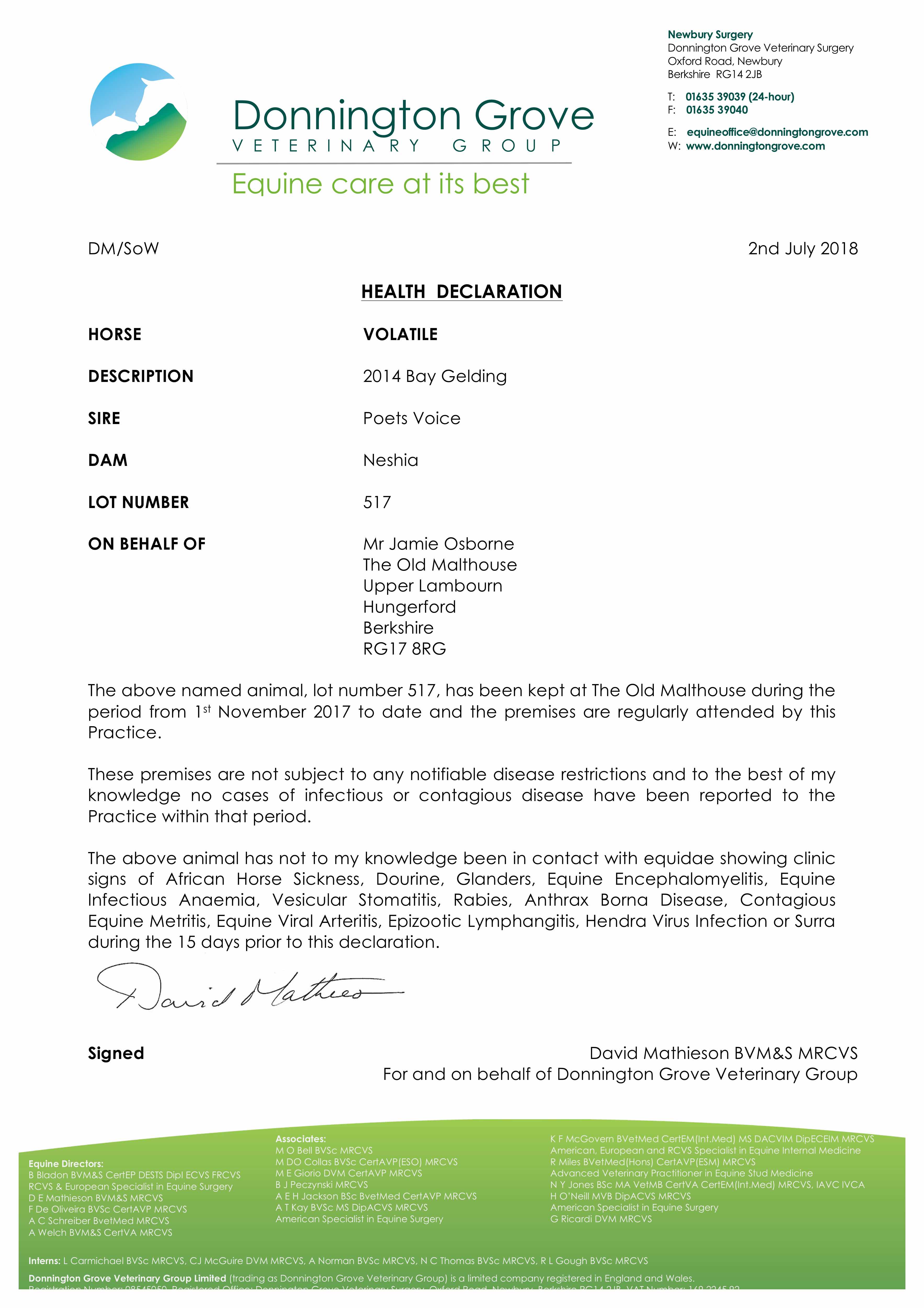 Consignor: The Old Malthouse Stables (J. Osborne)