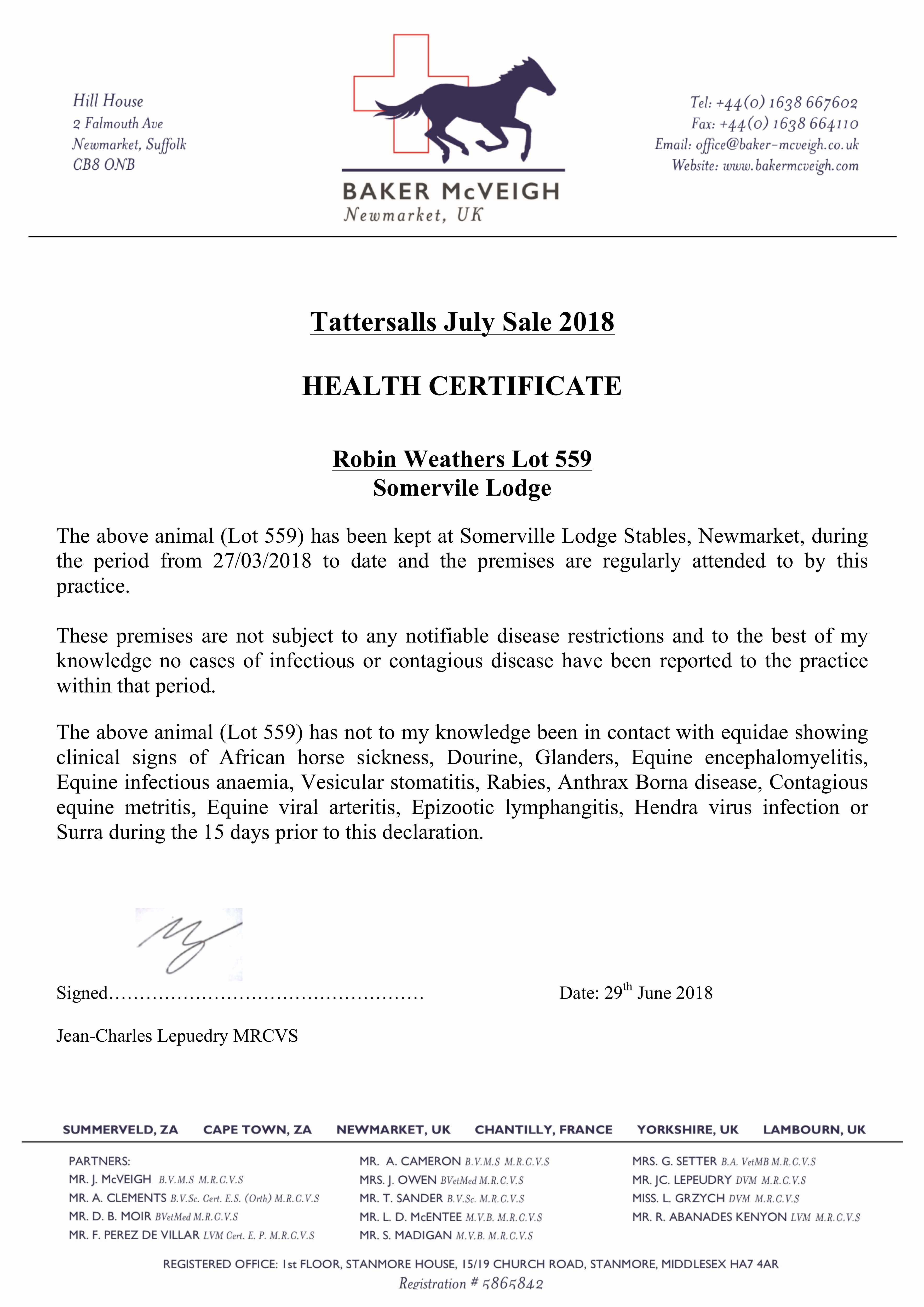 Consignor: Somerville Lodge Ltd. (W. Haggas)