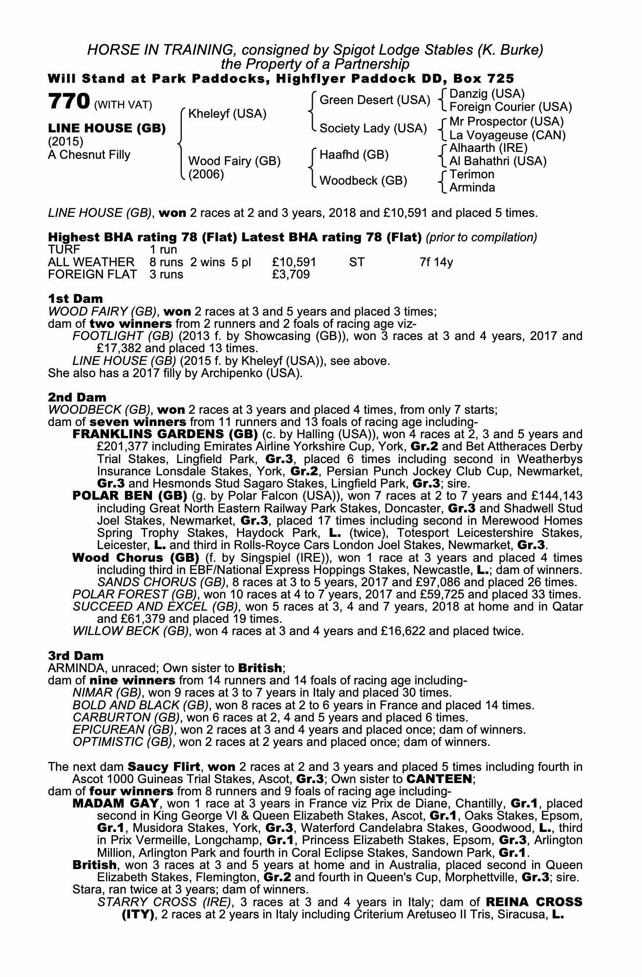 Consignor: Spigot Lodge Stables (K. Burke)