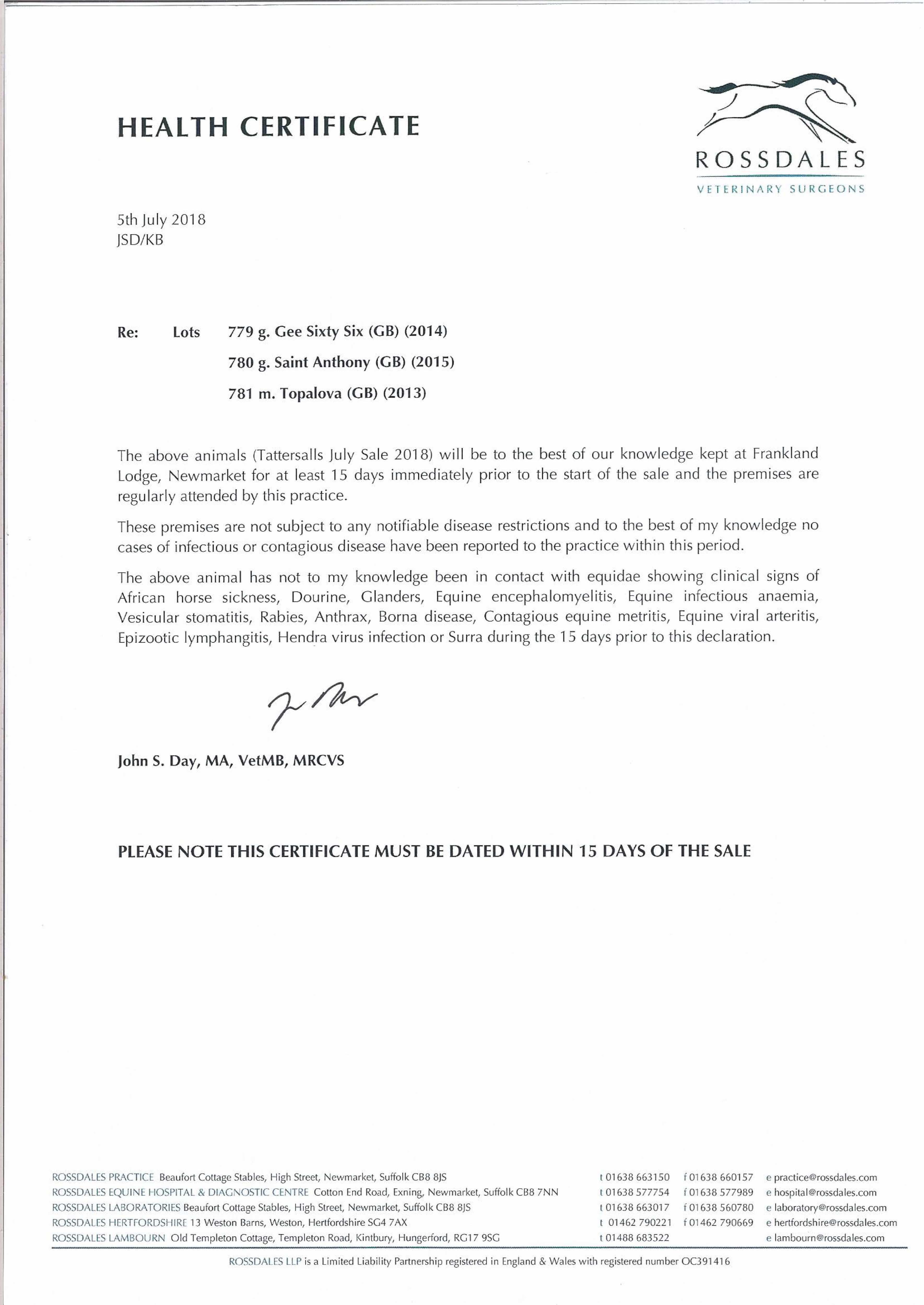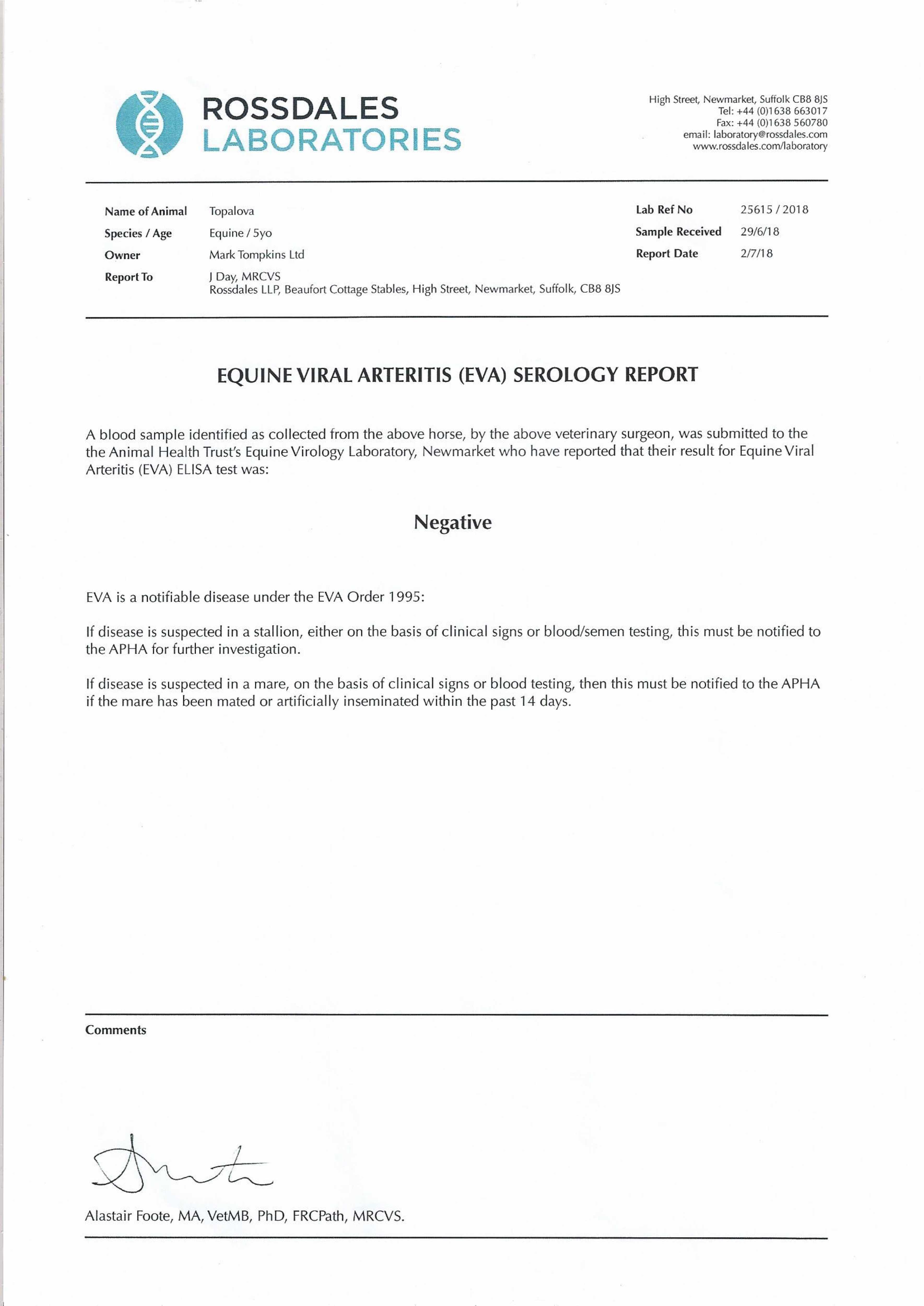 Consignor: Frankland Lodge (M. H. Tompkins)