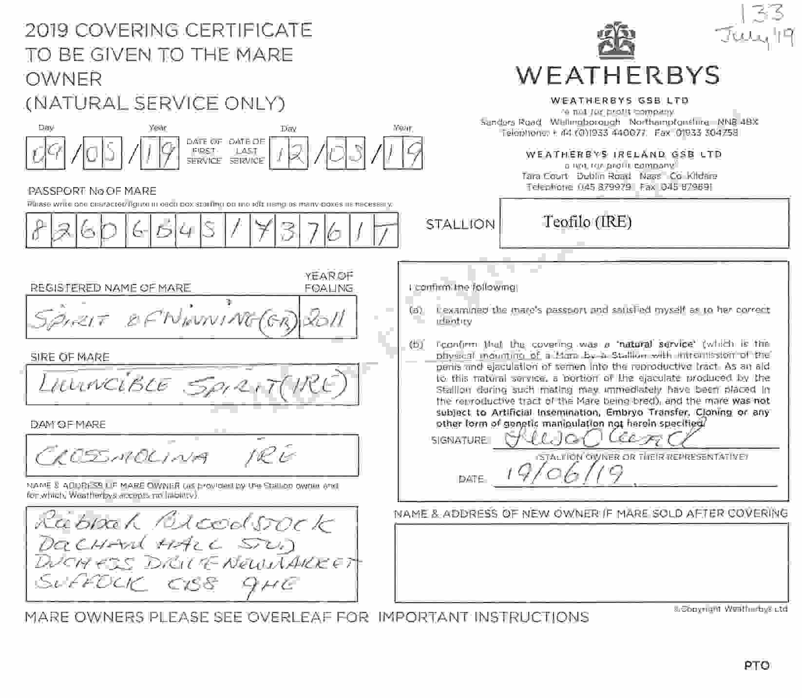 December Mare Sale 2018 lot 1611, Godolphin=>Paddy Byrne Transport 20,000 gns