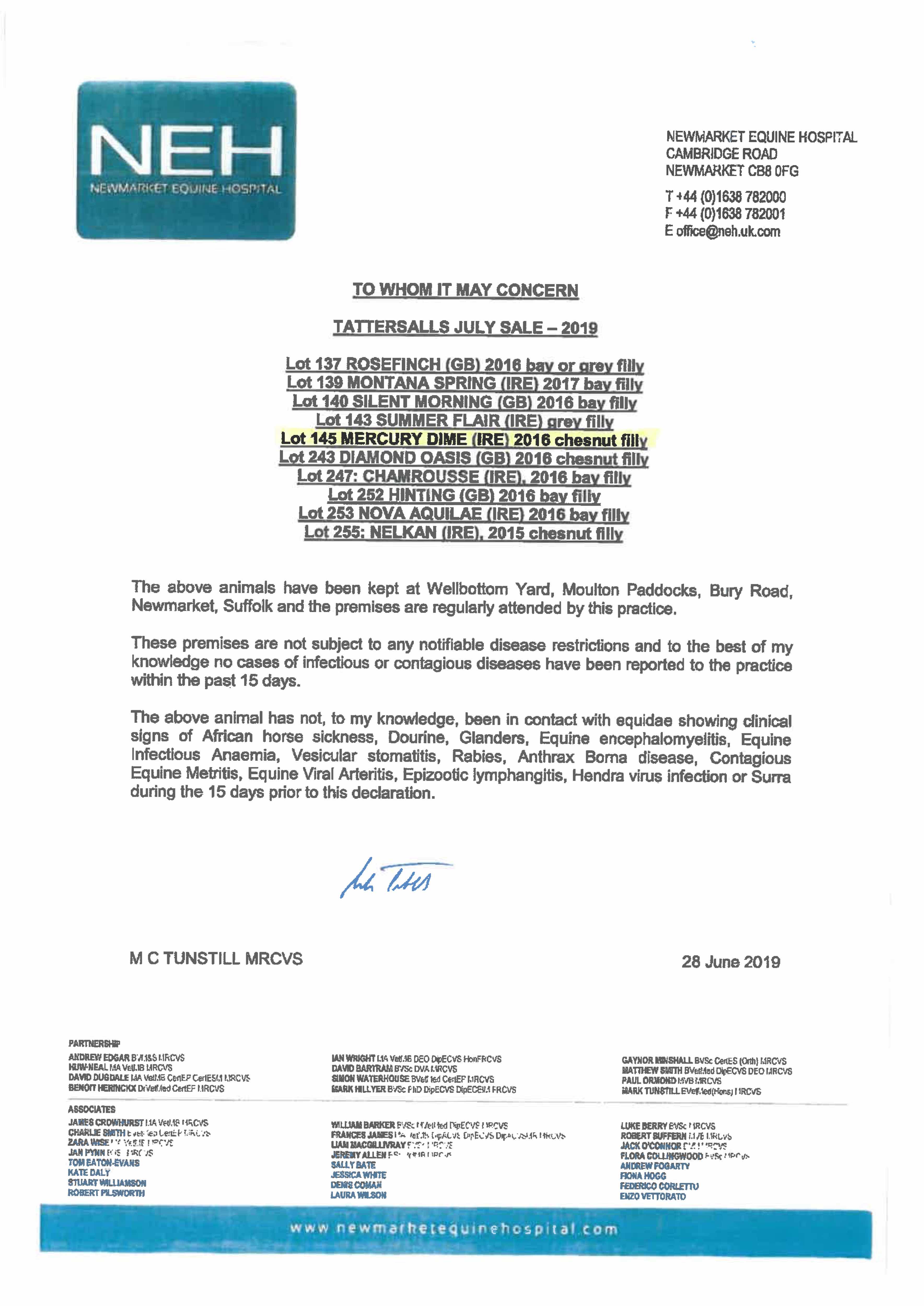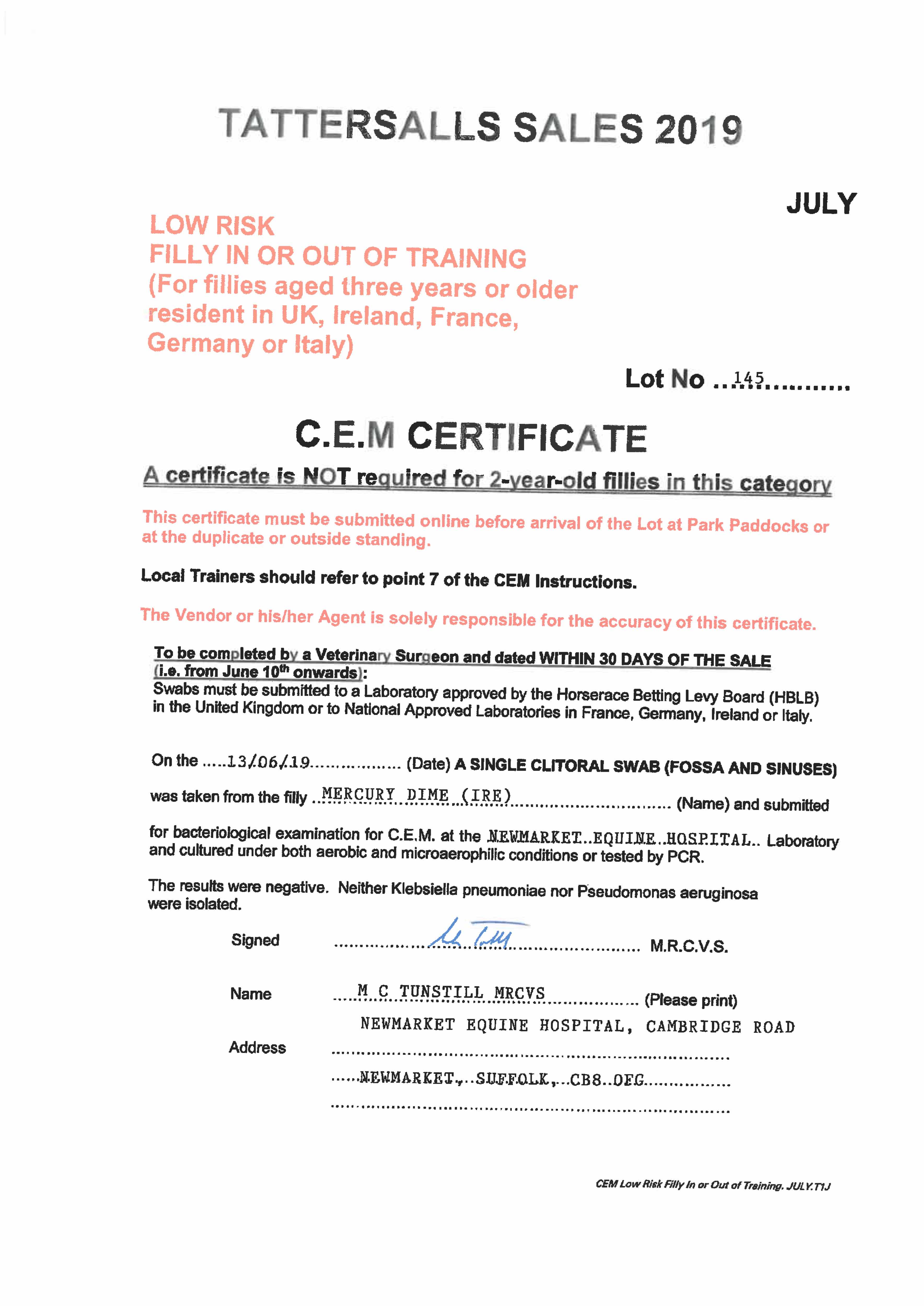 Fillies Examination Cert