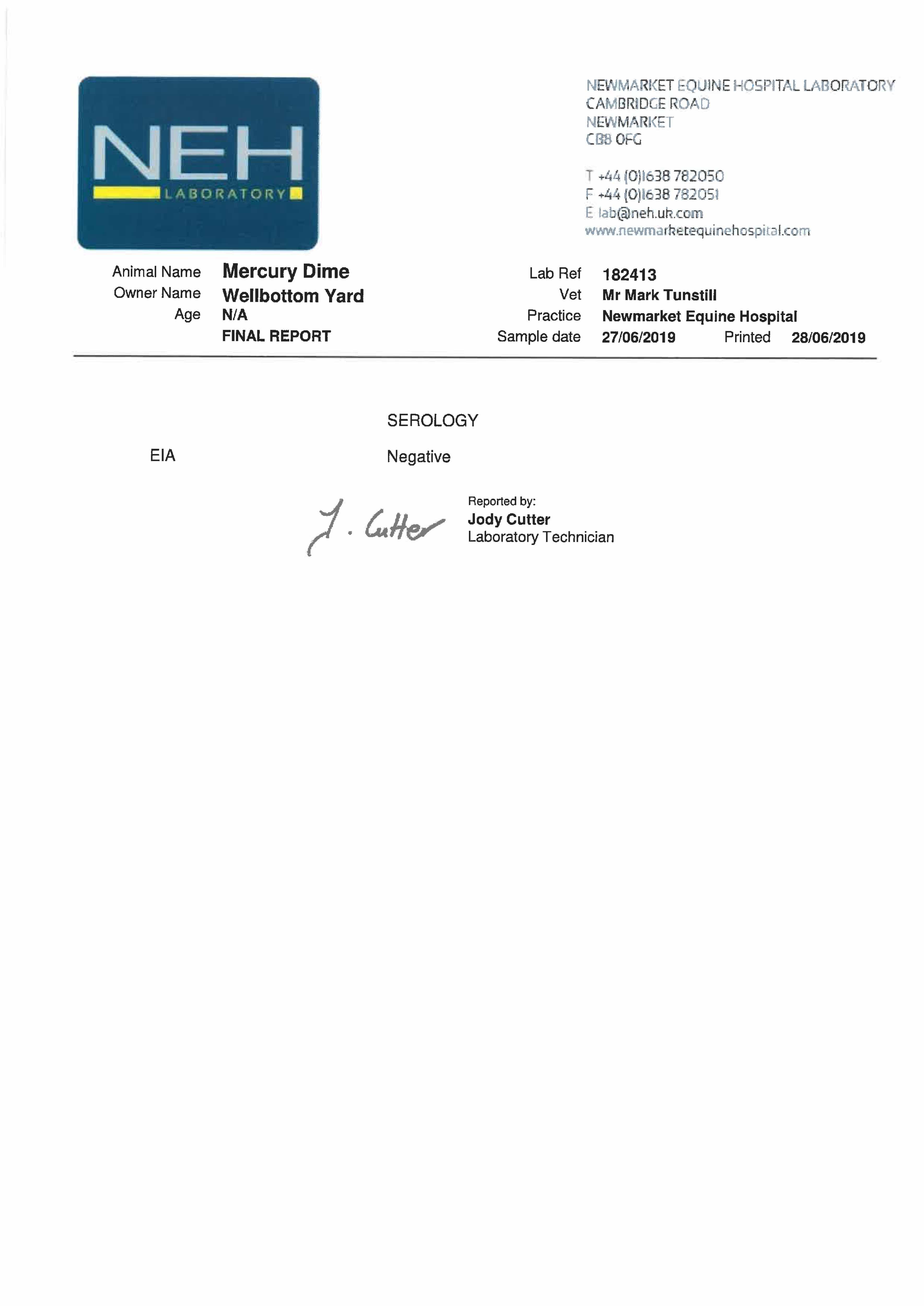 Piroplasmosis Certificate