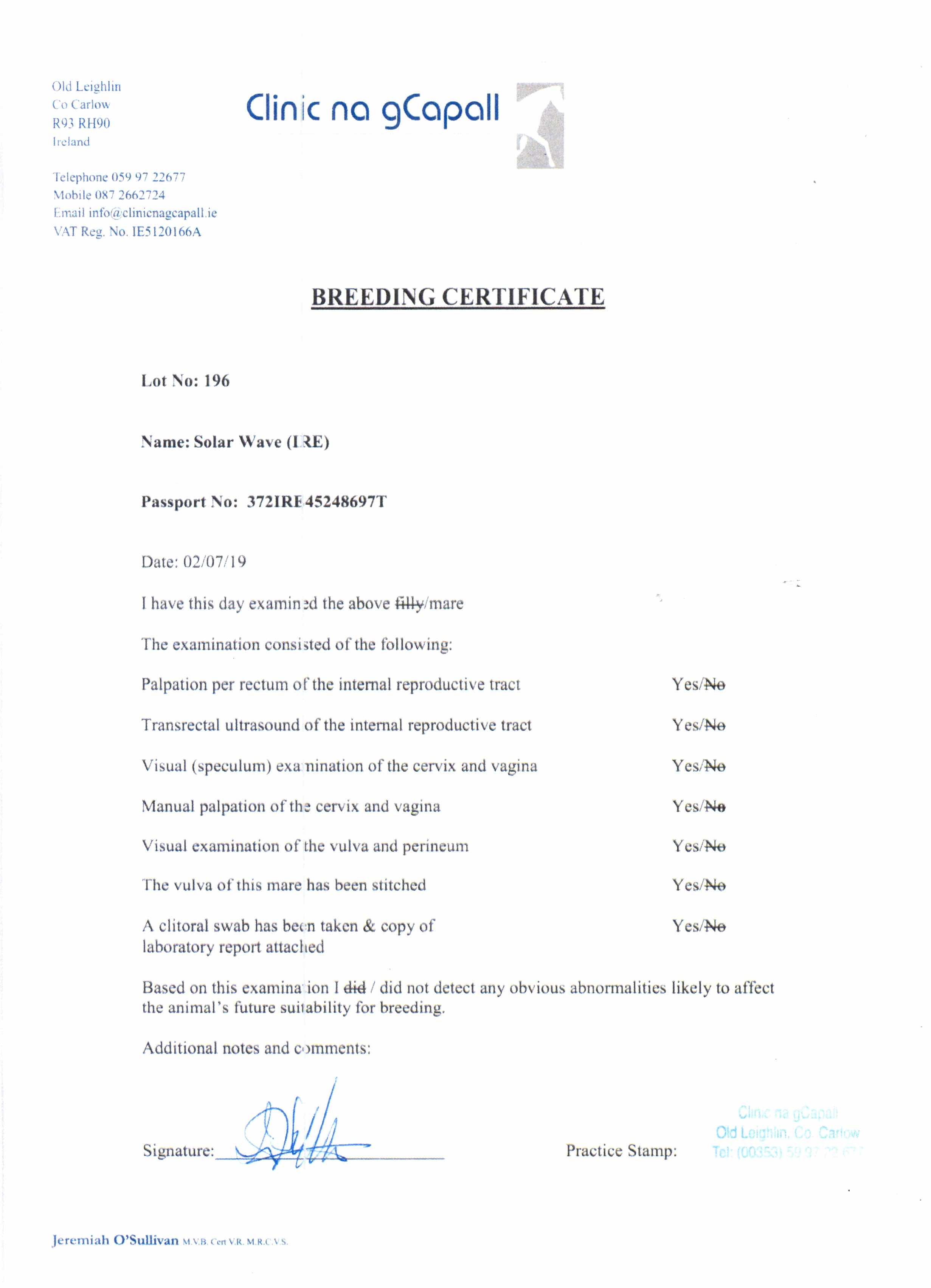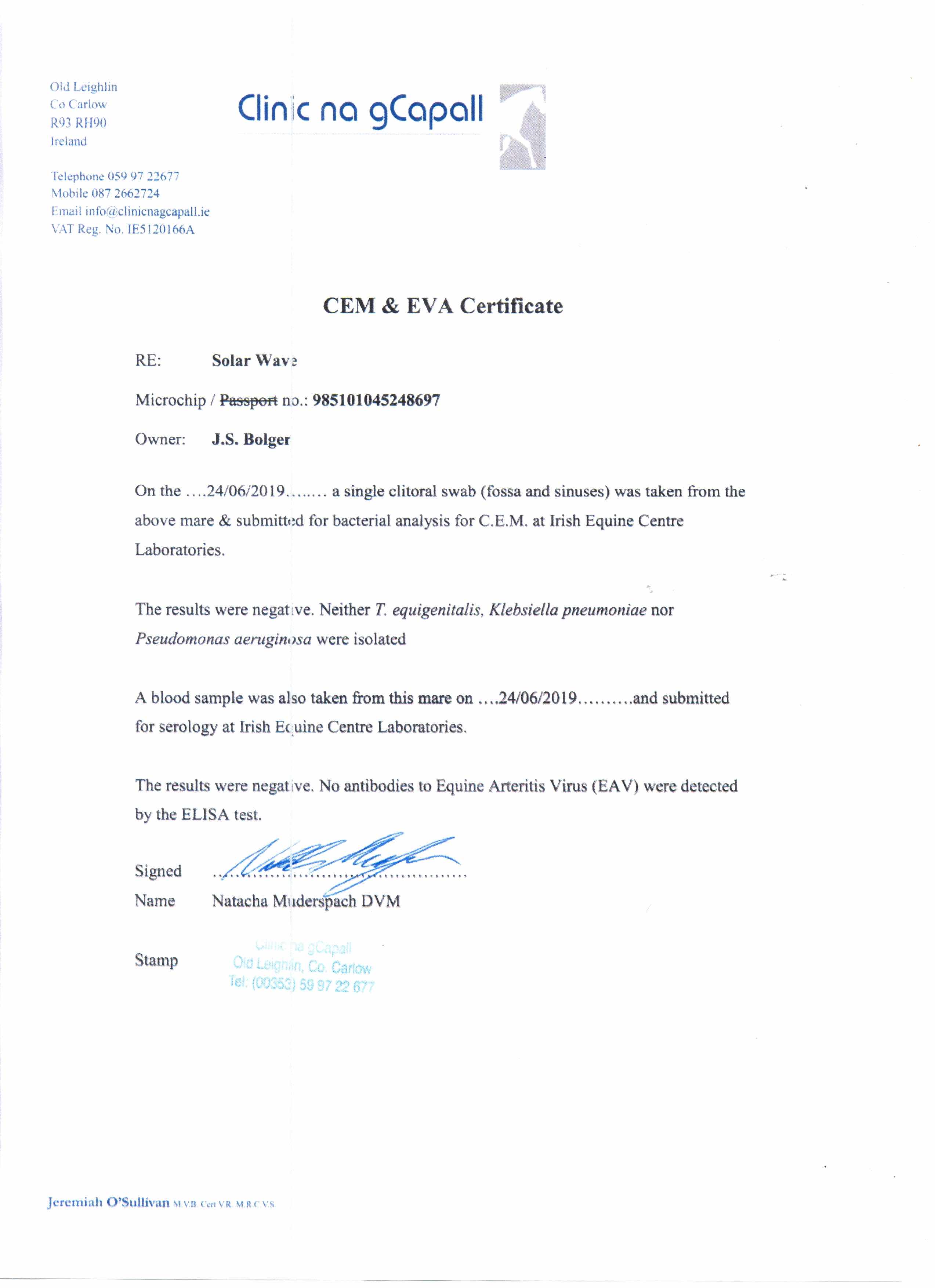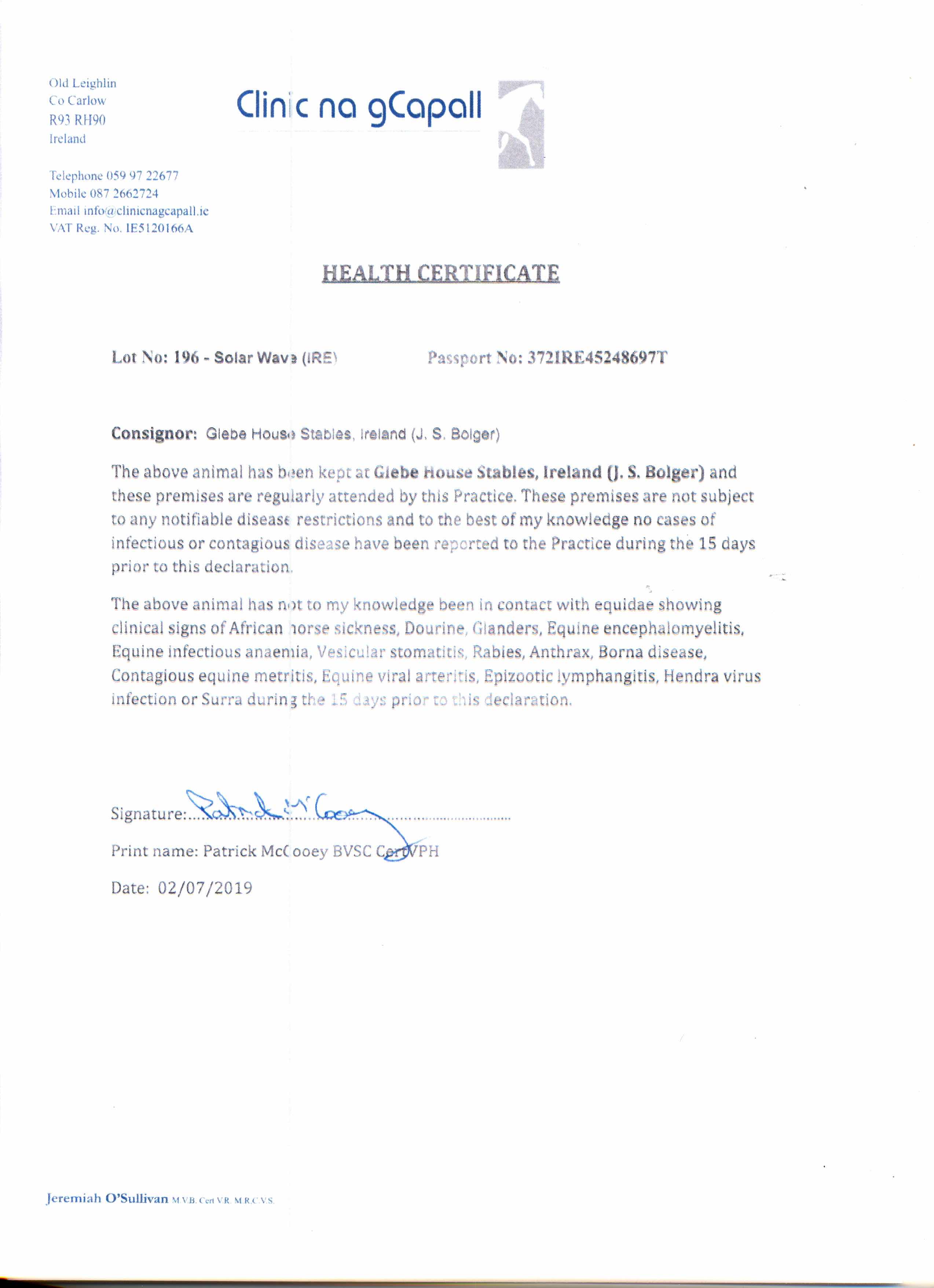 Consignor: Glebe House Stables, Ireland (J. S. Bolger)