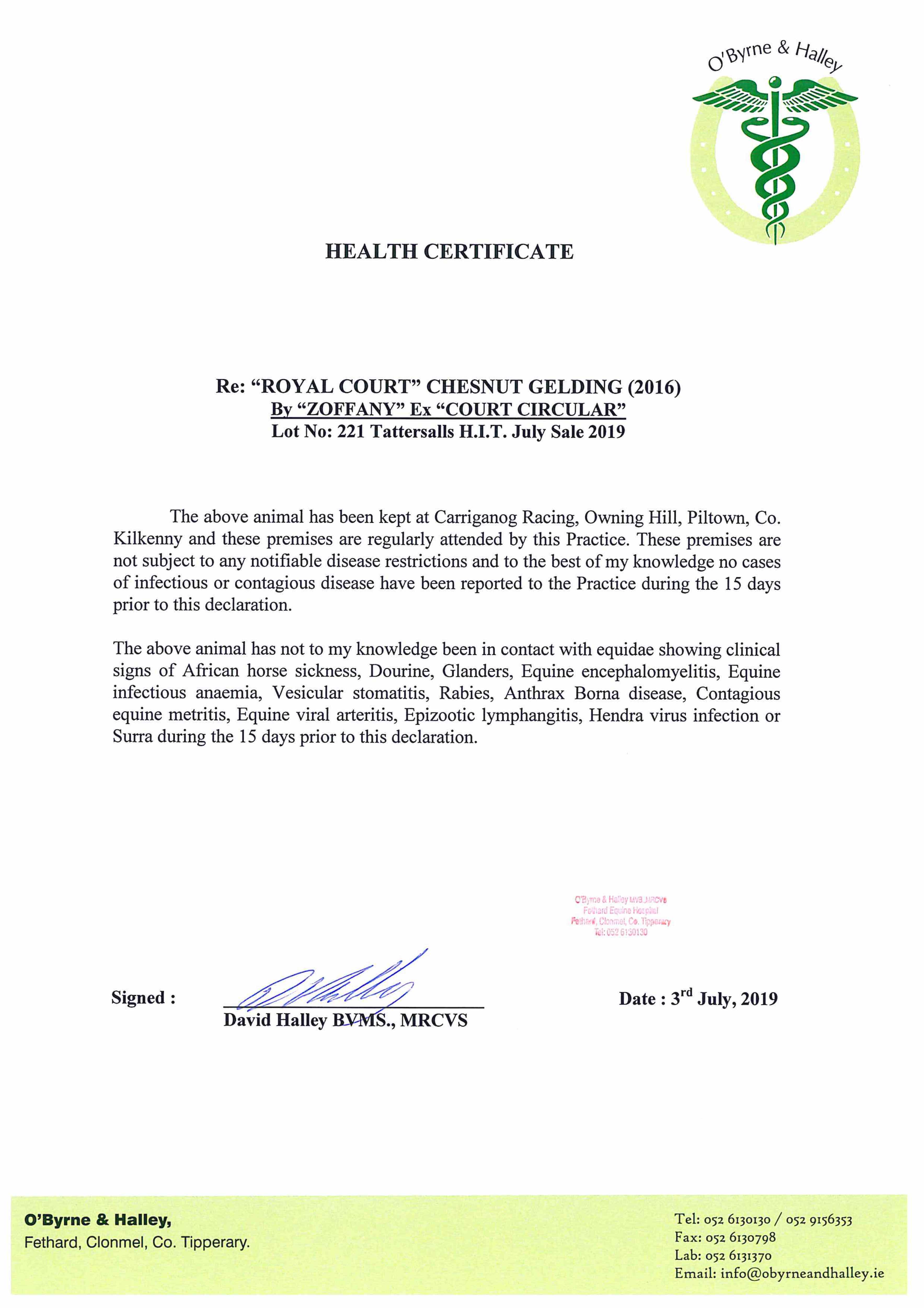 Consignor: Carriganog Racing, Ireland (J. P. O'Brien)