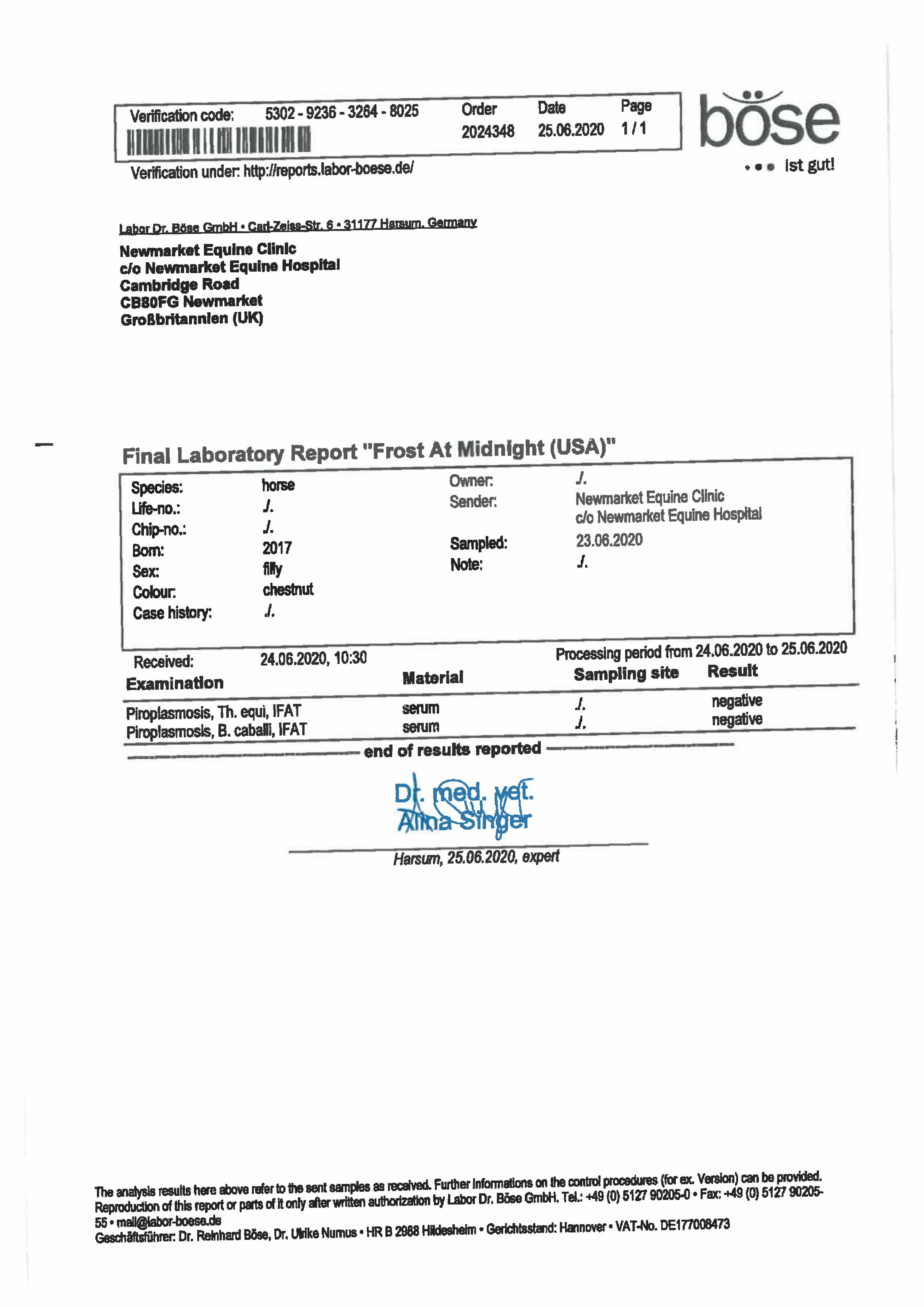 Piroplasmosis Certificate