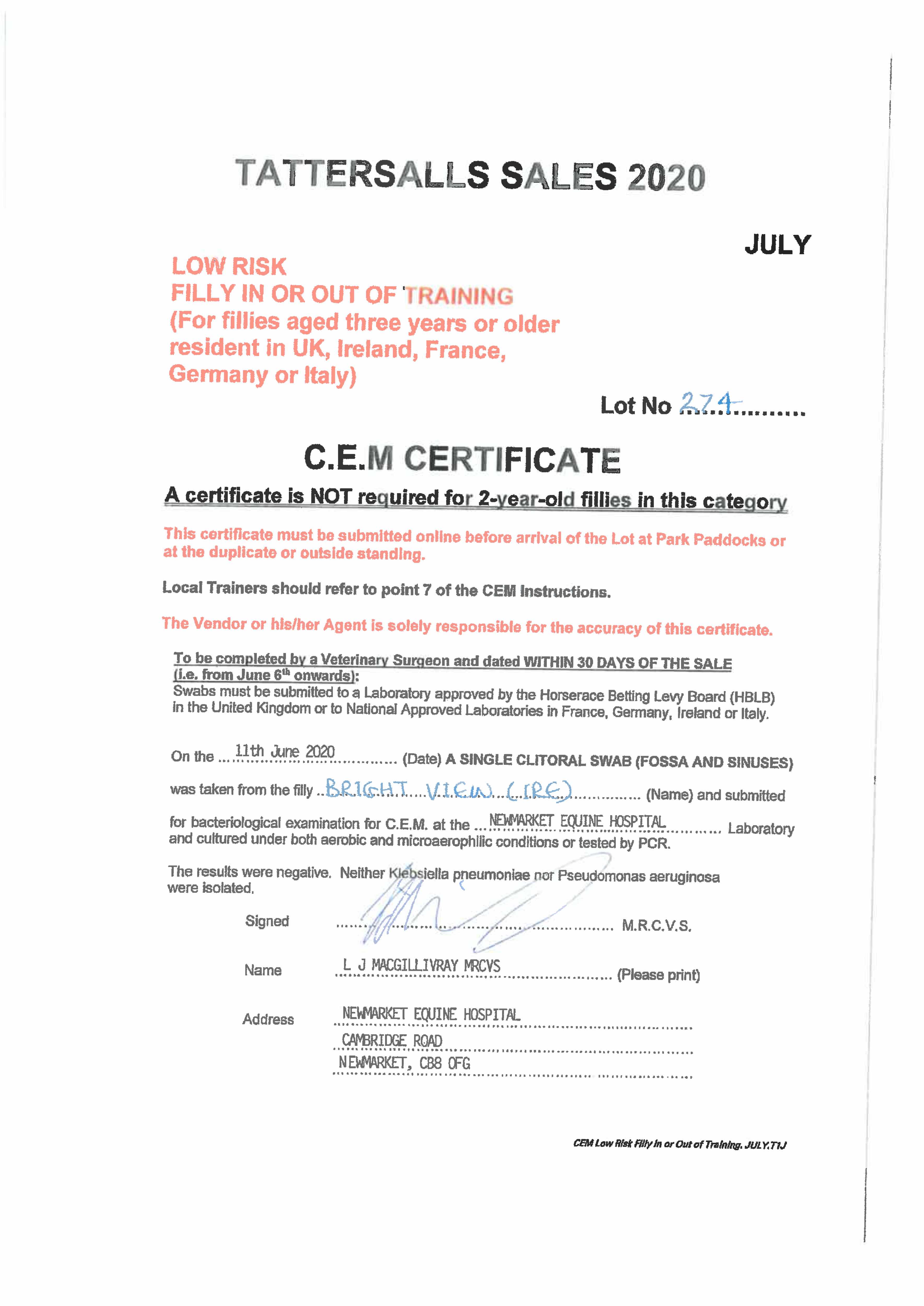 Consignor: Gainsborough Stables (S. & E. Crisford)