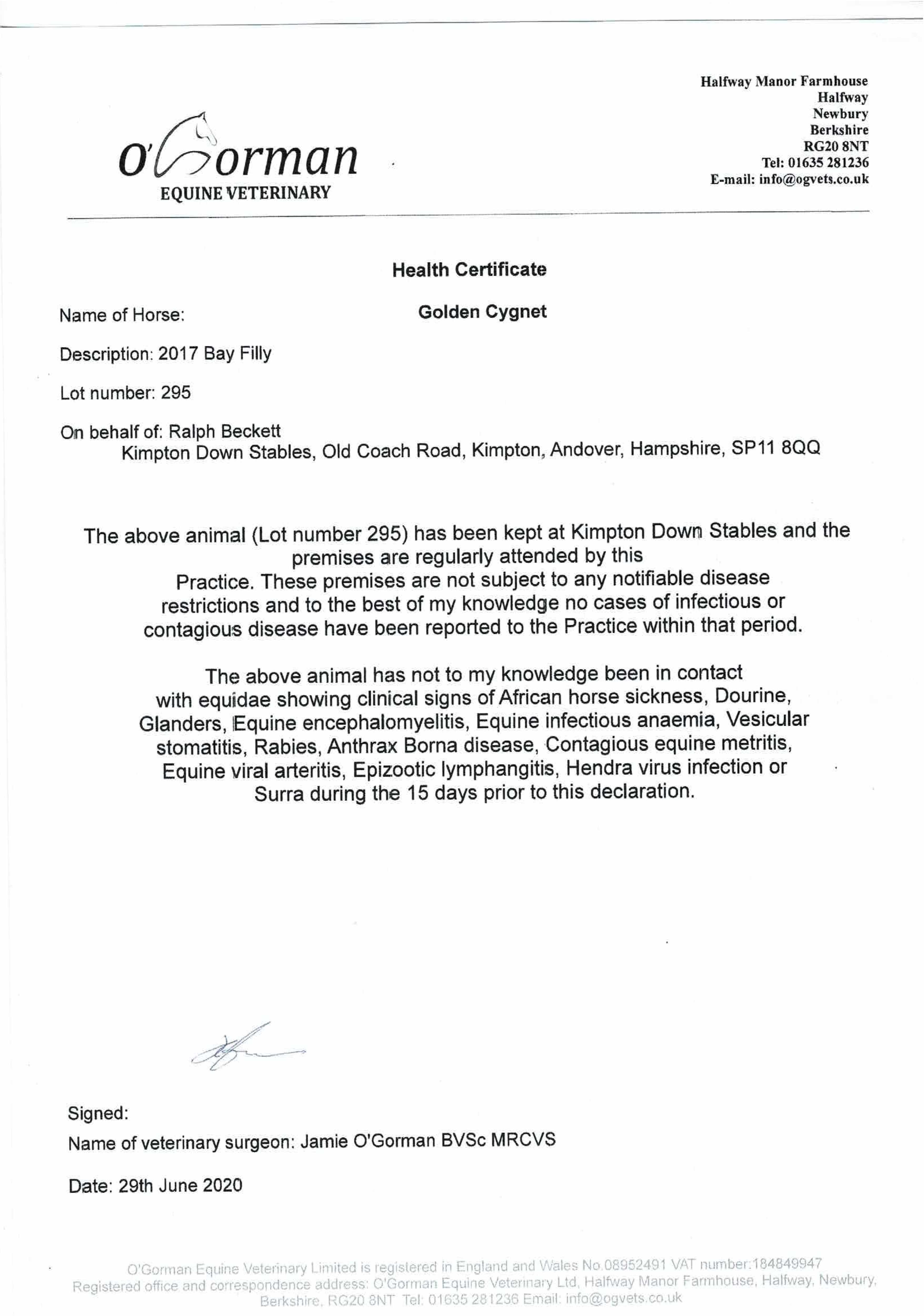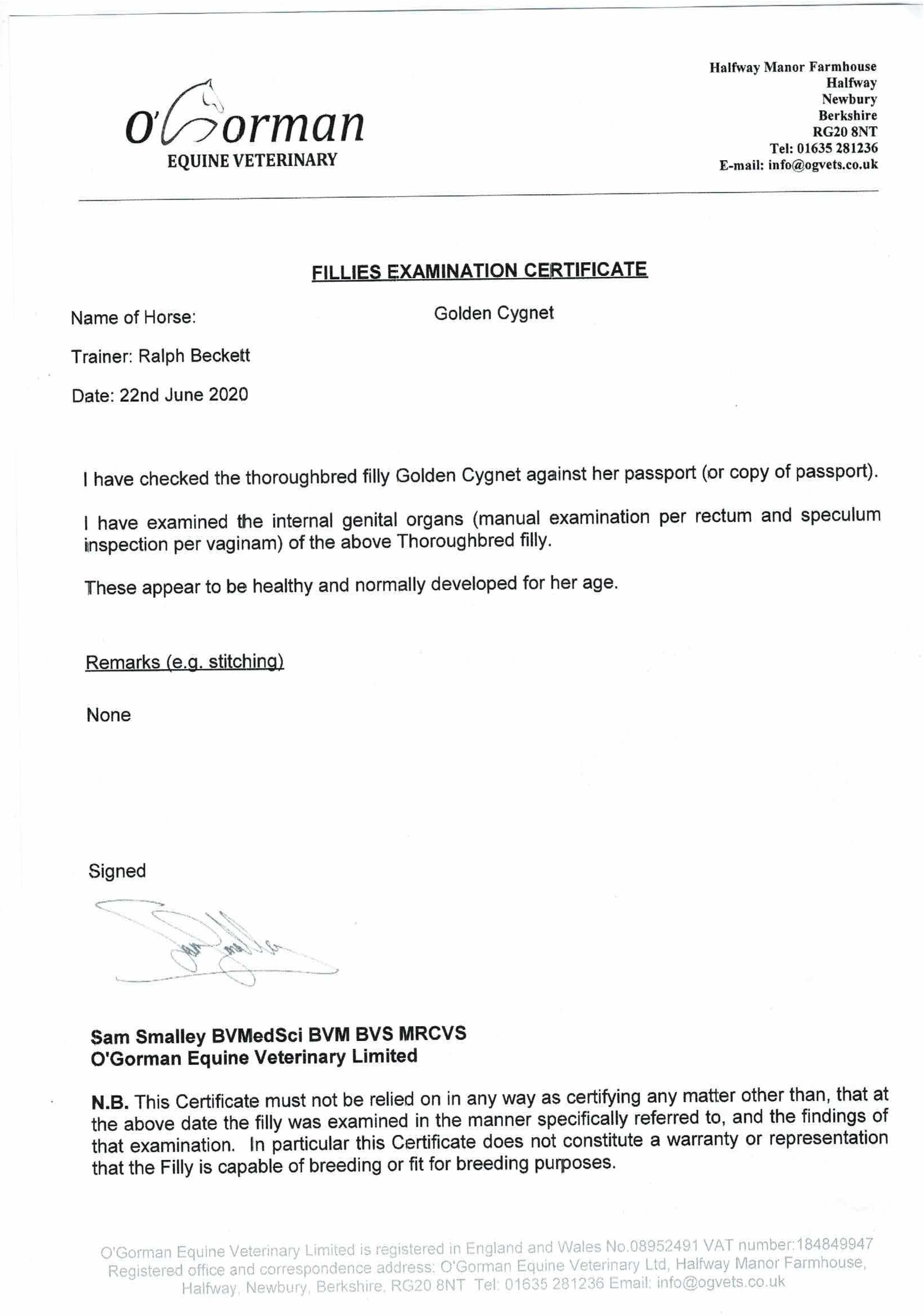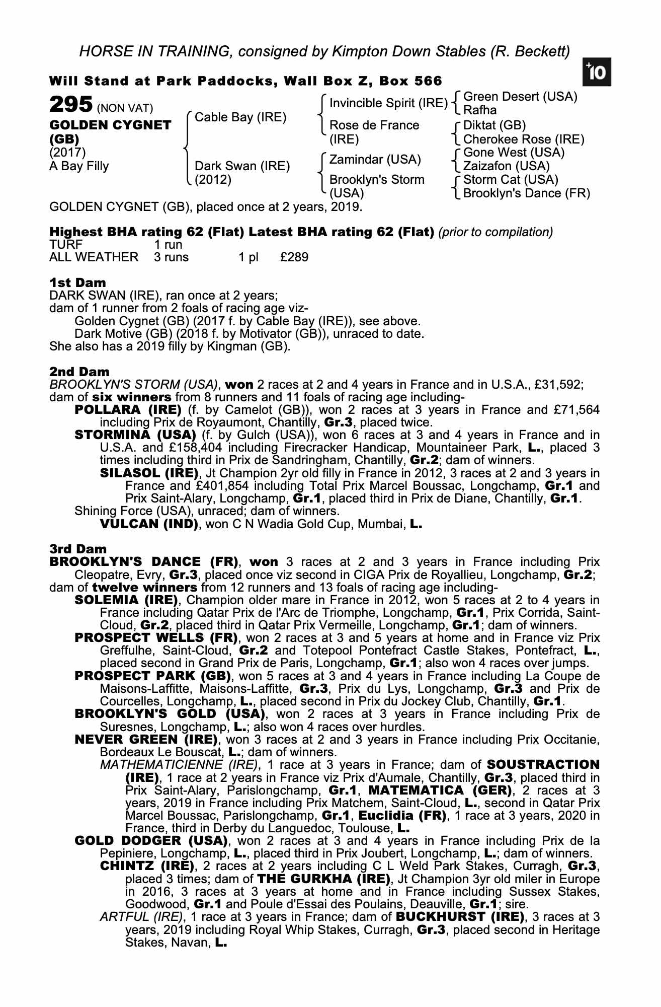 August Sale 2022 lot 185 Cygneture (GB) (F. by Kingman (GB)), Jamie Railton (Agent)=>Sheif Danna 2,500 gns