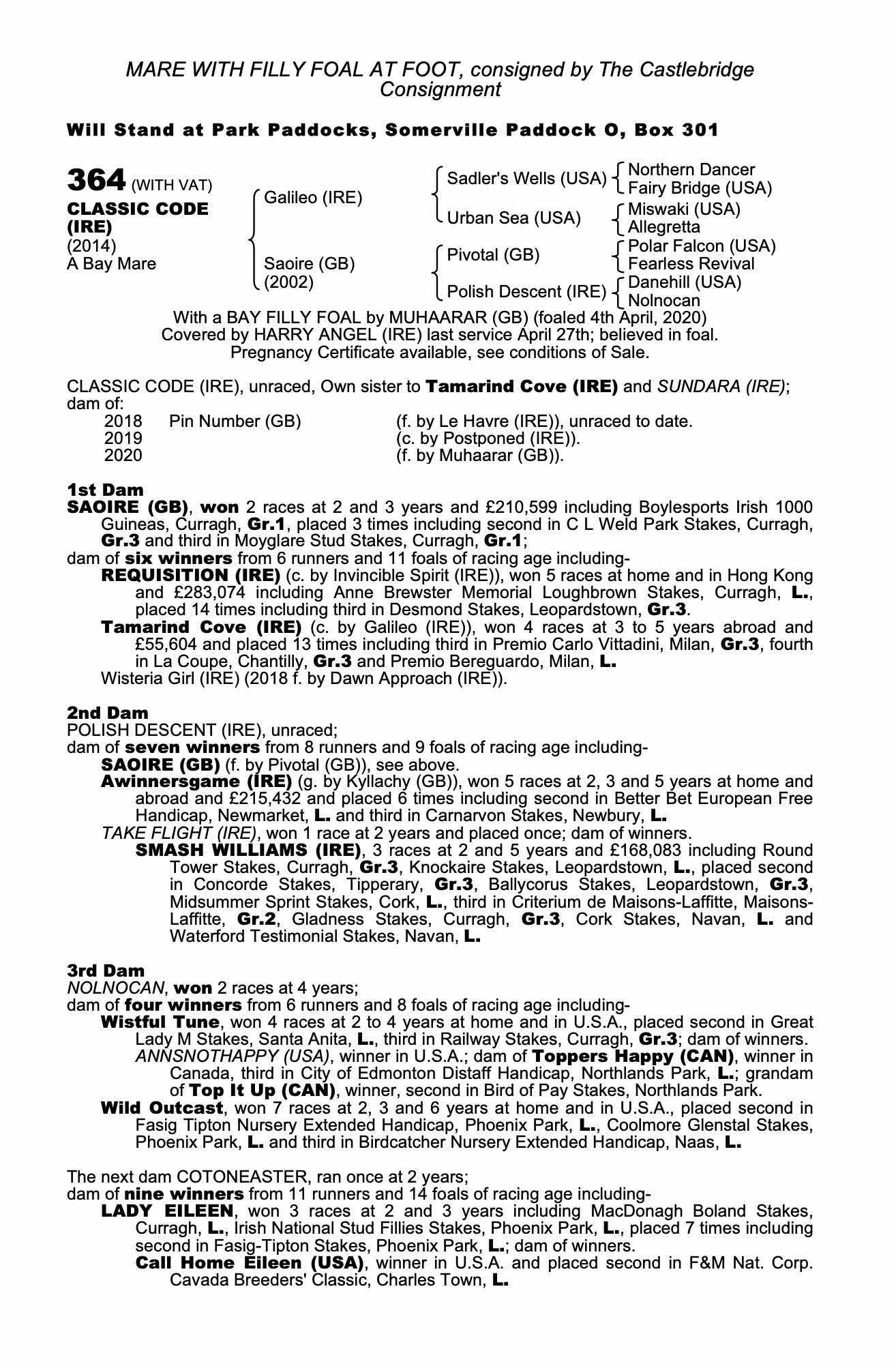 Online Sale - 25th October 2024 lot 105 Very Classy (GB) (F. by Muhaarar (GB)), Yapham Mill Stud=>Lot Not Sold 900 gns