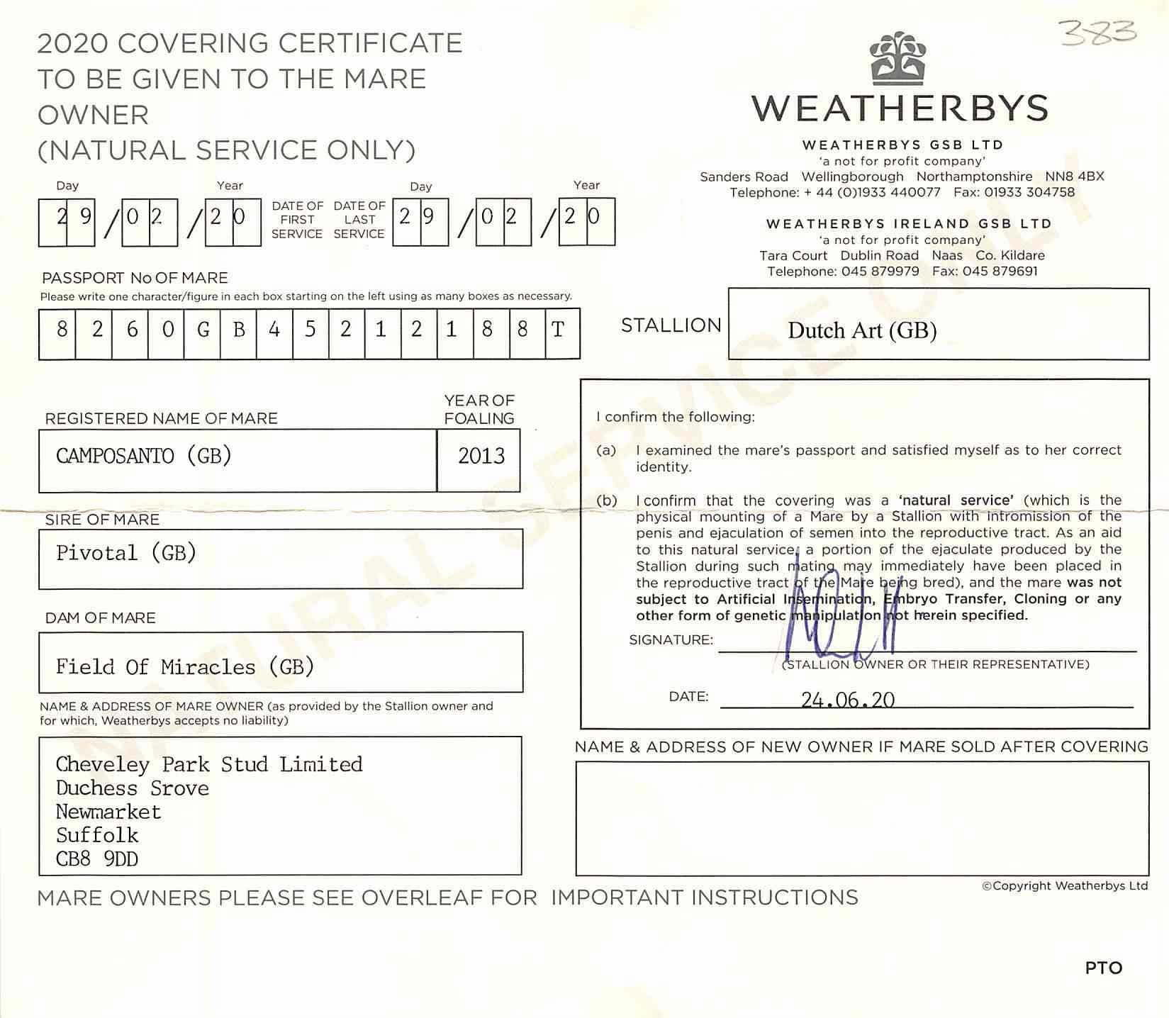 December Mare Sale 2020 lot 1984 Piazza Navona (GB) (F. by Dutch Art (GB)), Cheveley Park Stud Ltd.=>Vendor 5,000 gns