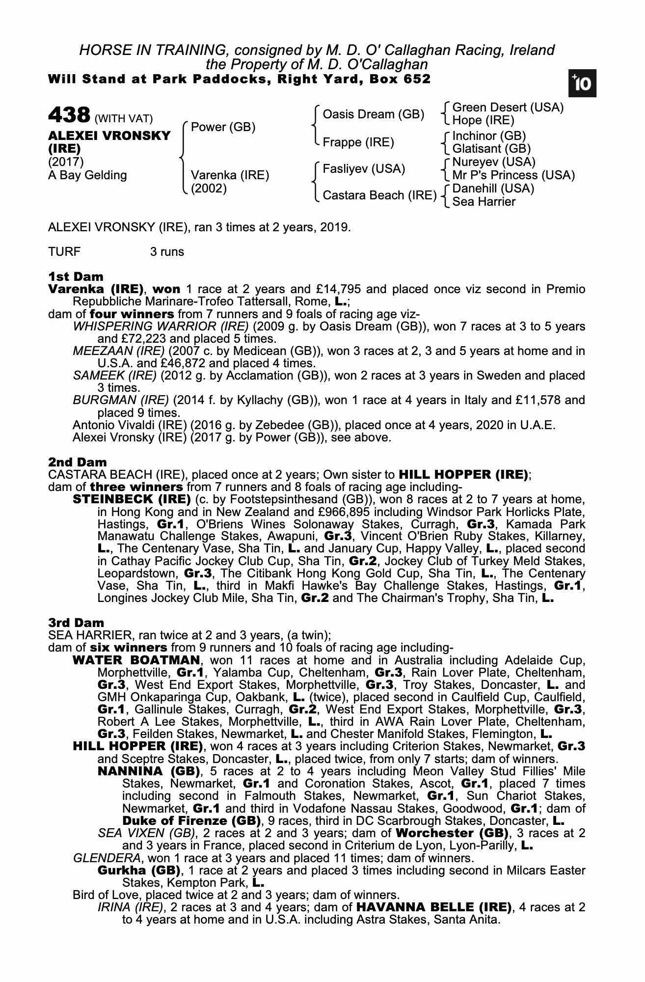 Consignor: M. D. O' Callaghan Racing, Ireland