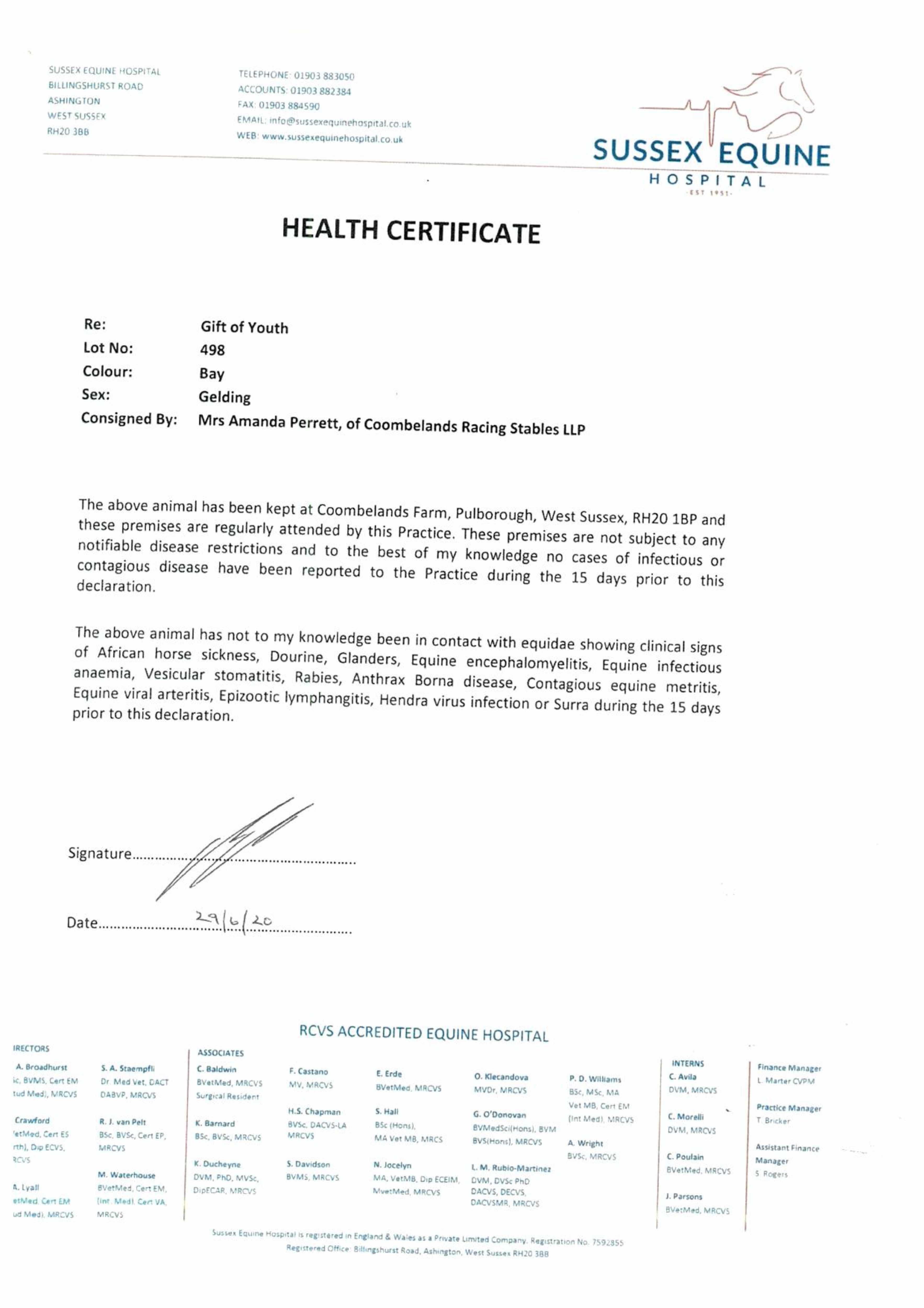 Consignor: Coombelands Racing Stables (Mrs A. Perrett)