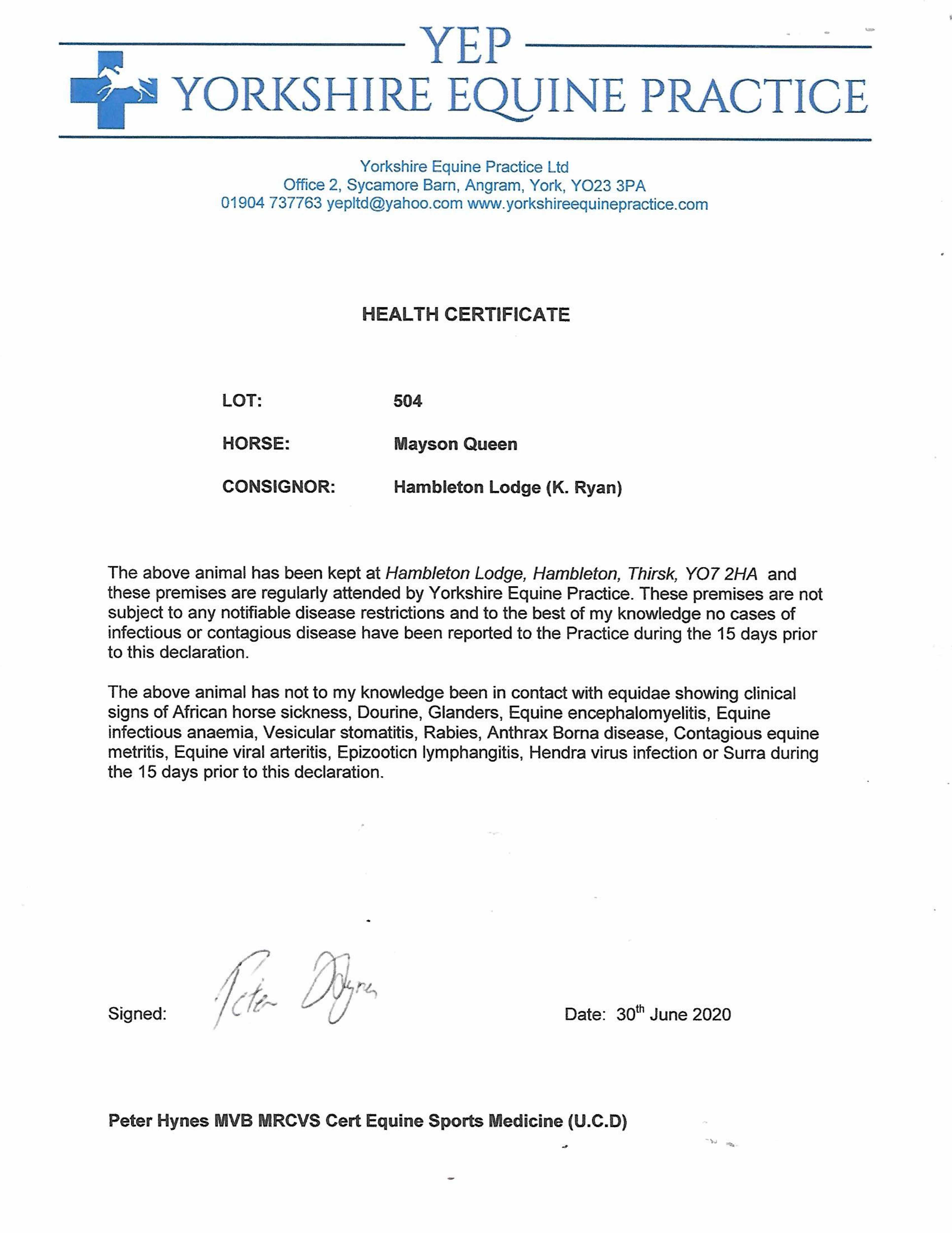 Consignor: Hambleton Lodge Stables (K. Ryan)