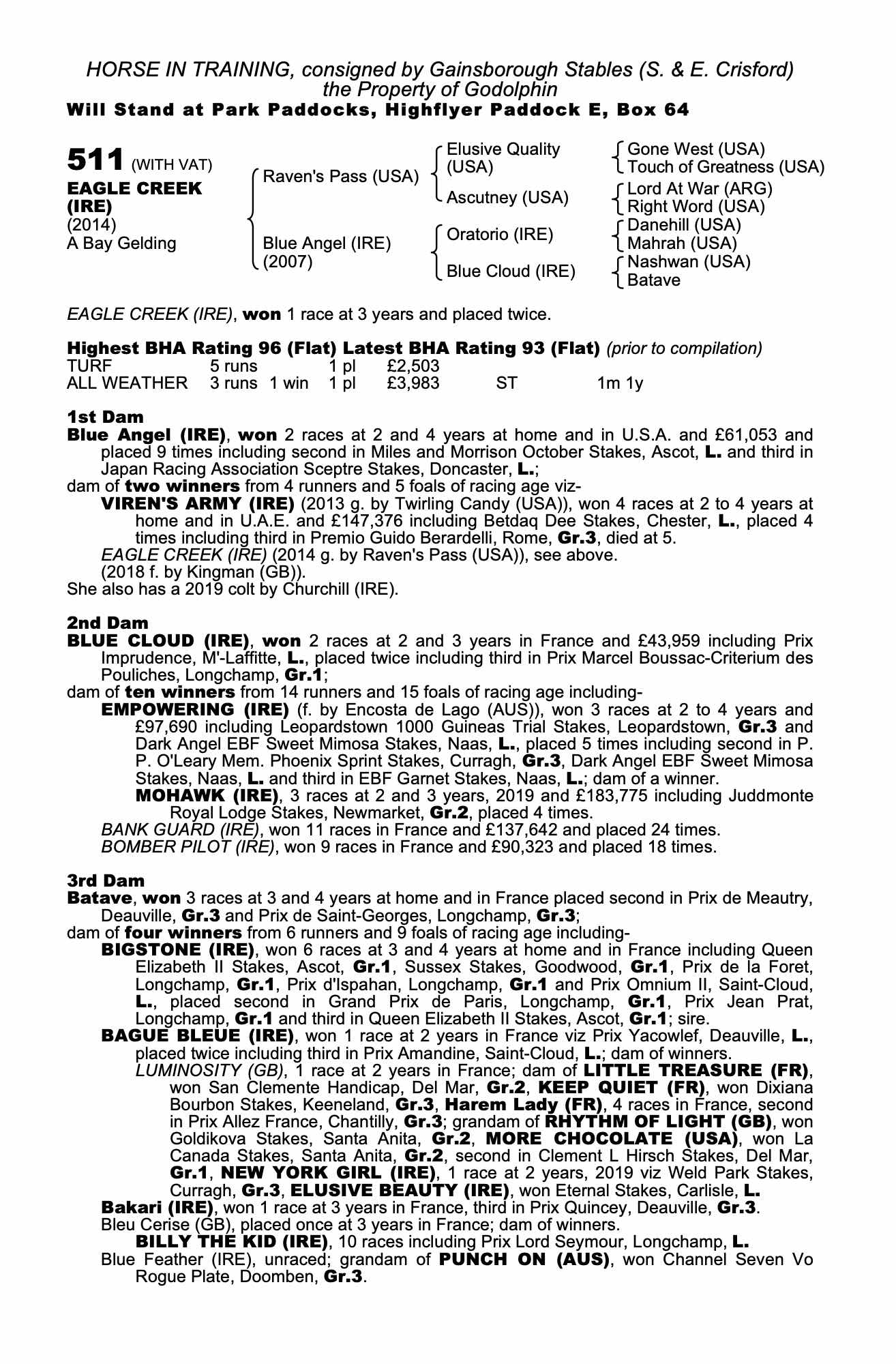 Consignor: Gainsborough Stables (S. & E. Crisford)