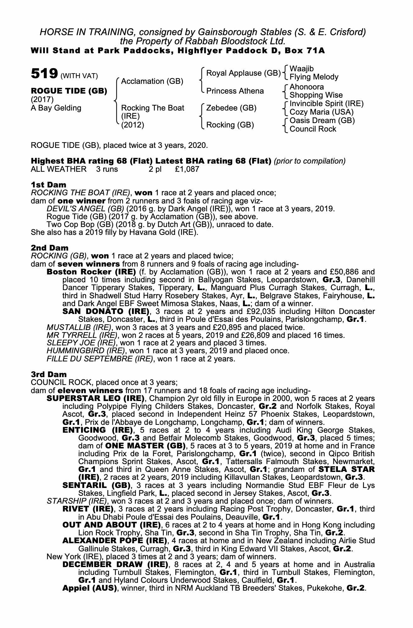 Consignor: Gainsborough Stables (S. & E. Crisford)
