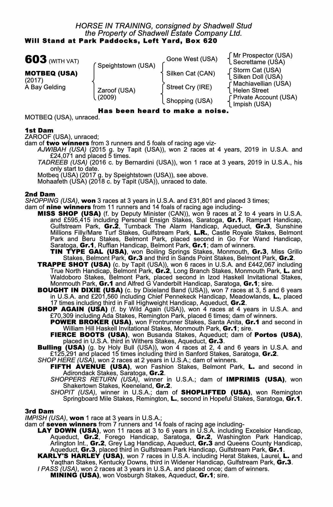 December Mare Sale 2017 lot 1397 Mohallela (USA) (F. by Teofilo (IRE)), Shadwell Stud=>Fathi Egziama 800 gns