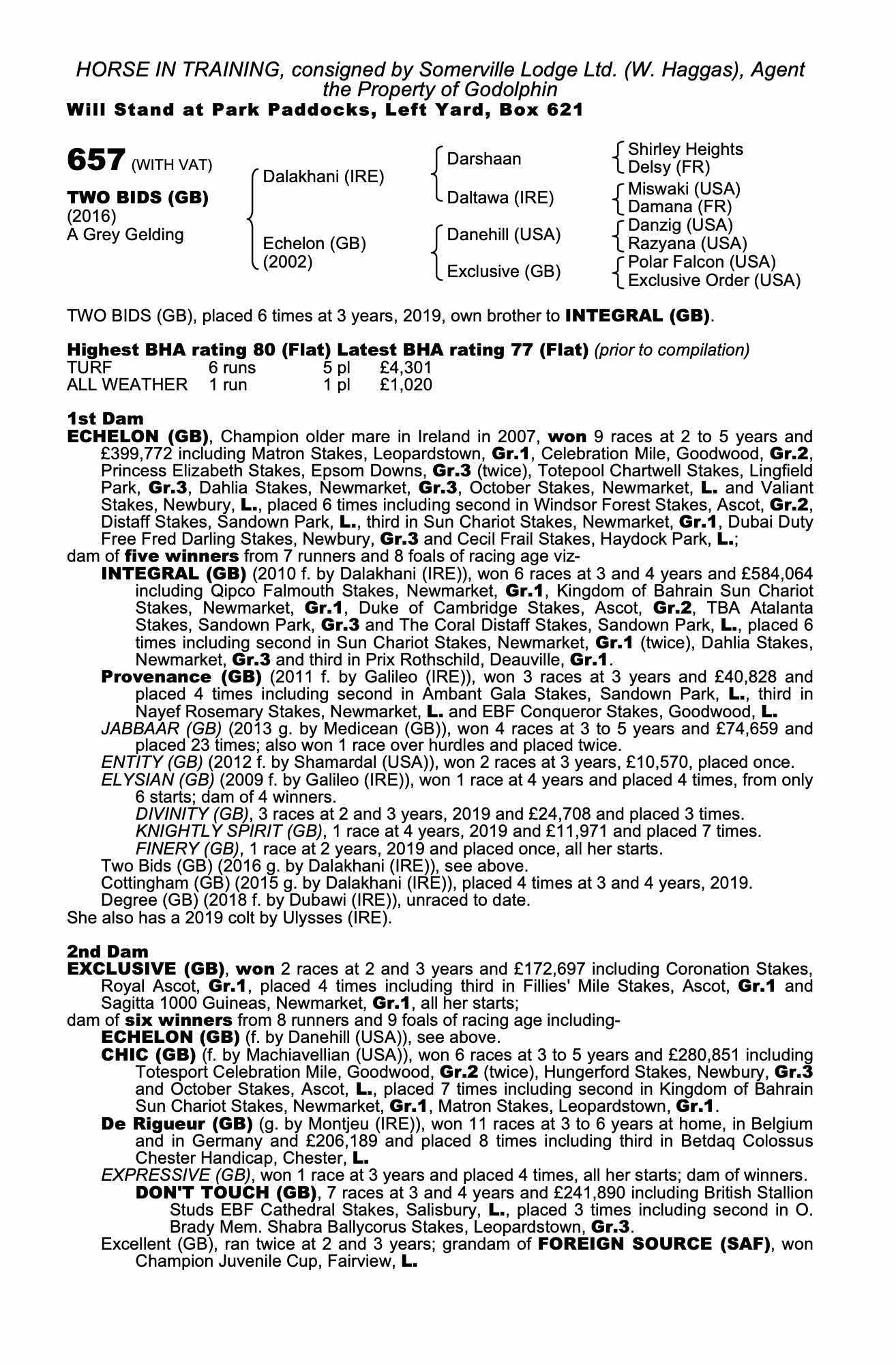 Consignor: Somerville Lodge Ltd. (W. Haggas), Agent