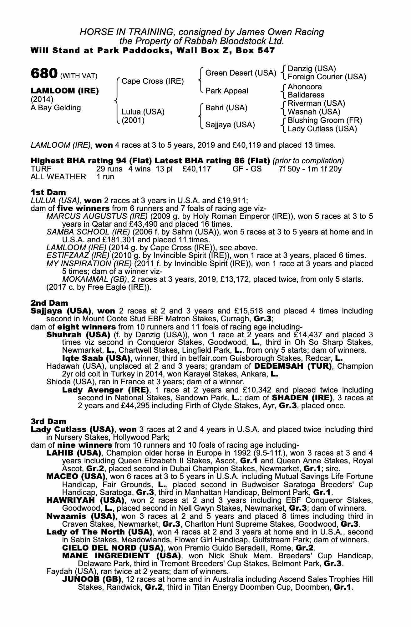 October Yearling Sale Book 1, 2015 lot 306, Lynn Lodge Stud, Ireland=>Rabbah Bloodstock 85,000 gns
