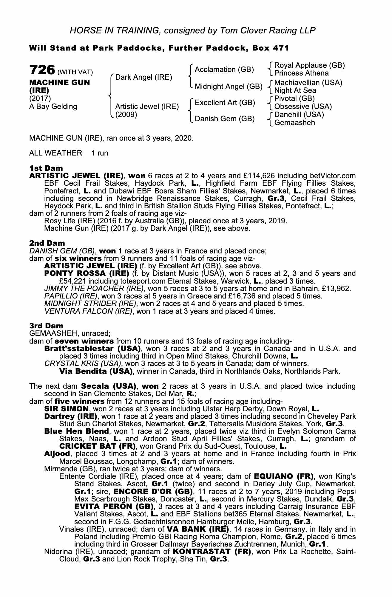 Consignor: Tom Clover Racing LLP
