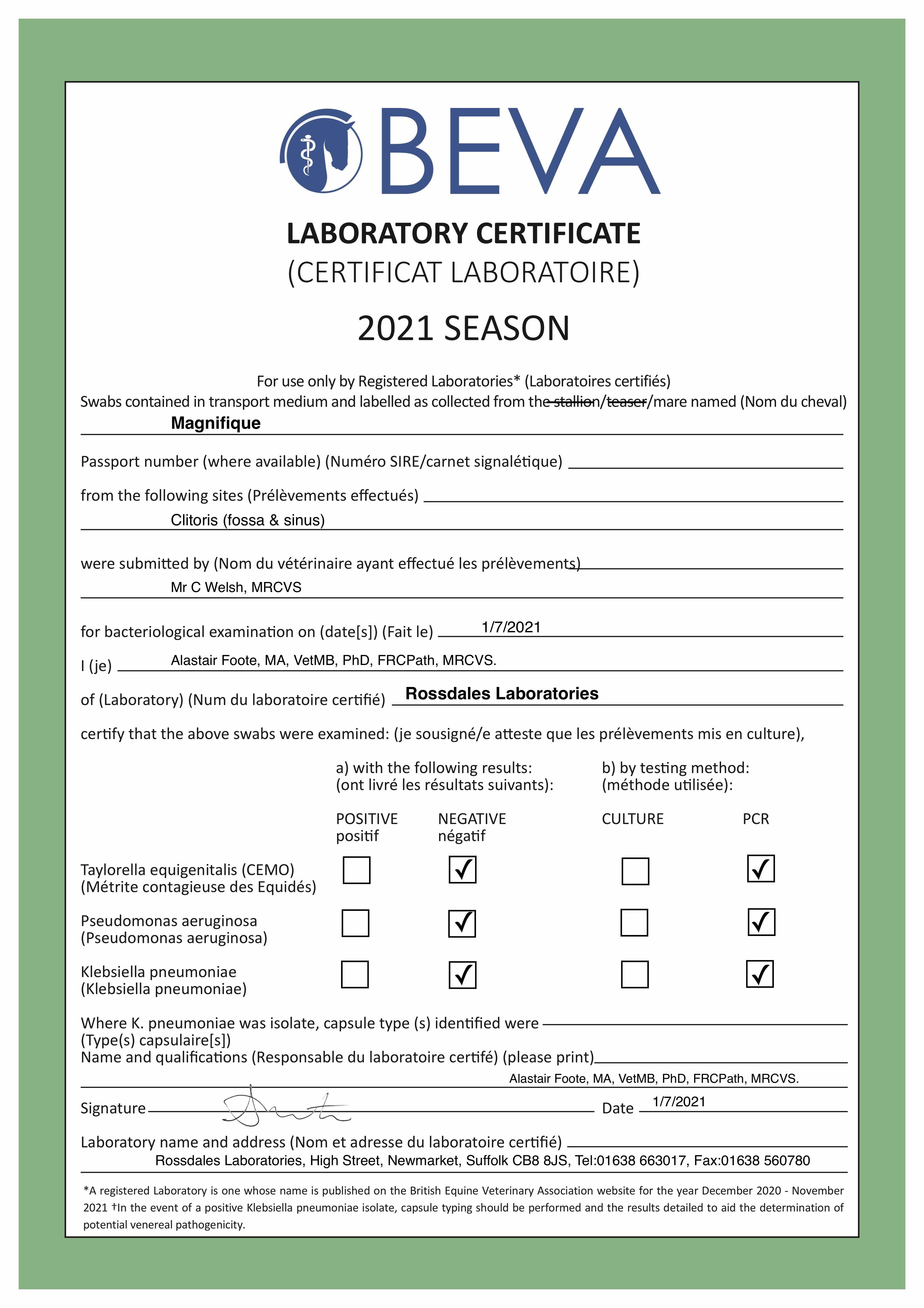 Fillies Examination Cert