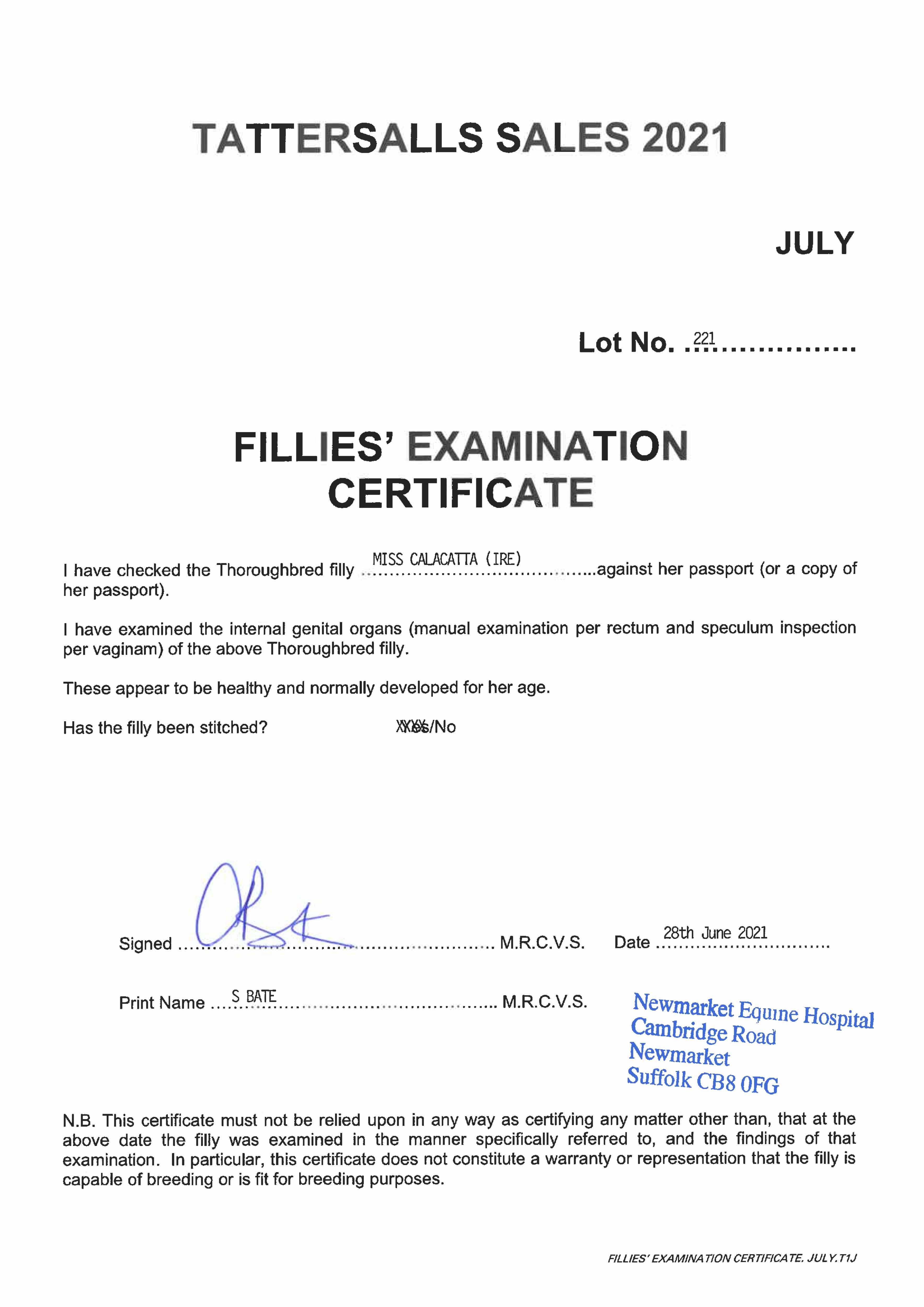 July Sale 2021 lot 222 Dulcet Spirit (GB) (F. by Invincible Spirit (IRE)), Jamesfield Stables (J. Tate)=>Alvediston Stud 5,000 gns