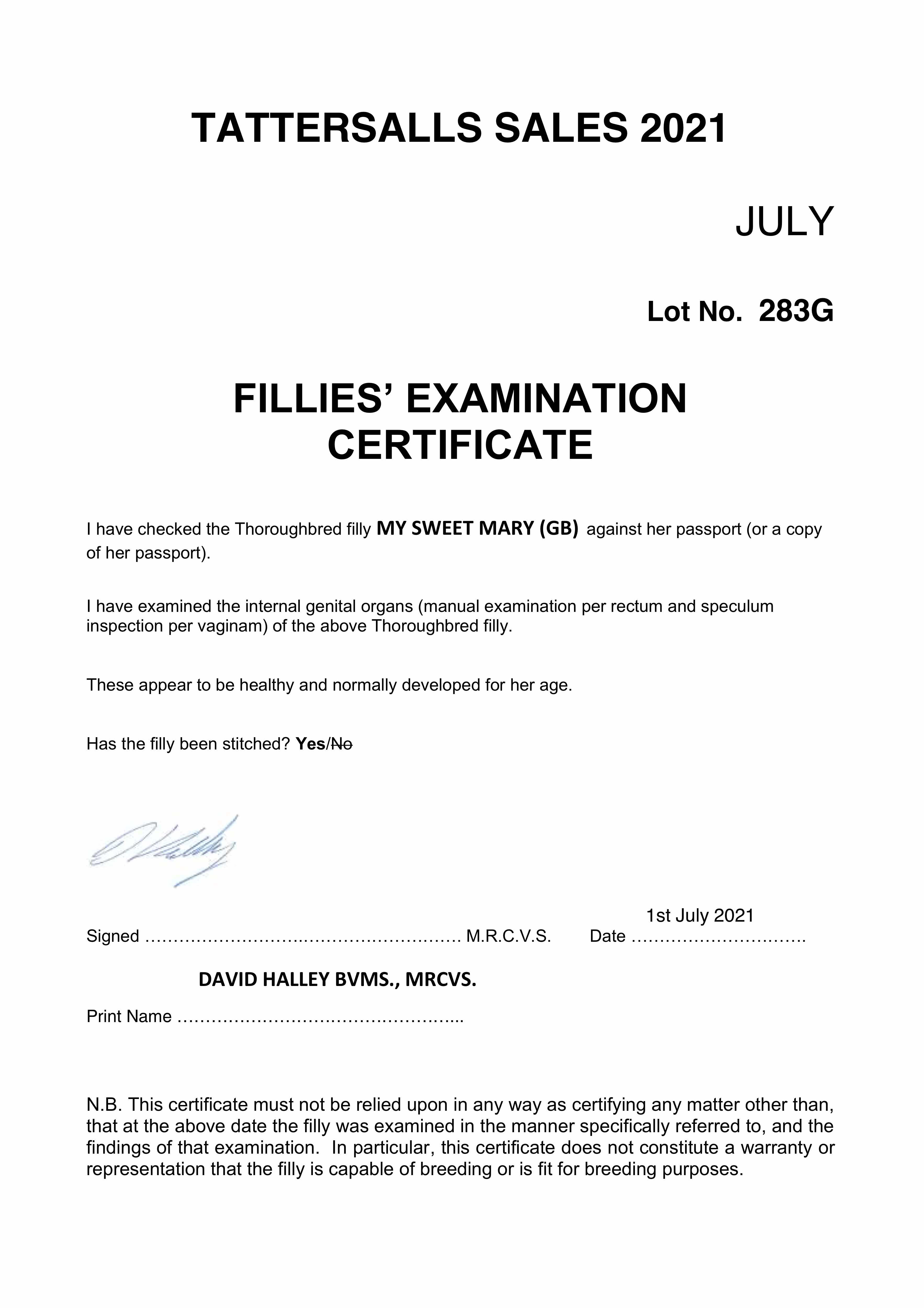 December Foal Sale 2021 lot 1231 F. by Muhaarar (GB) 2021, Brookside Stud (Newmarket)=>Vendor 10,000 gns