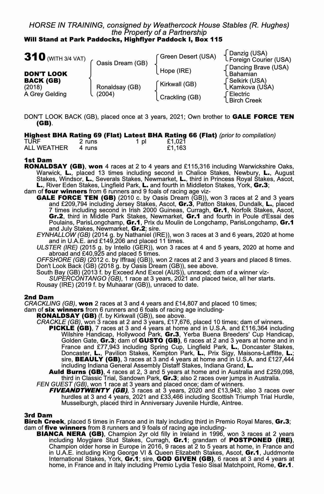 Consignor: Weathercock House Stables (R. Hughes)