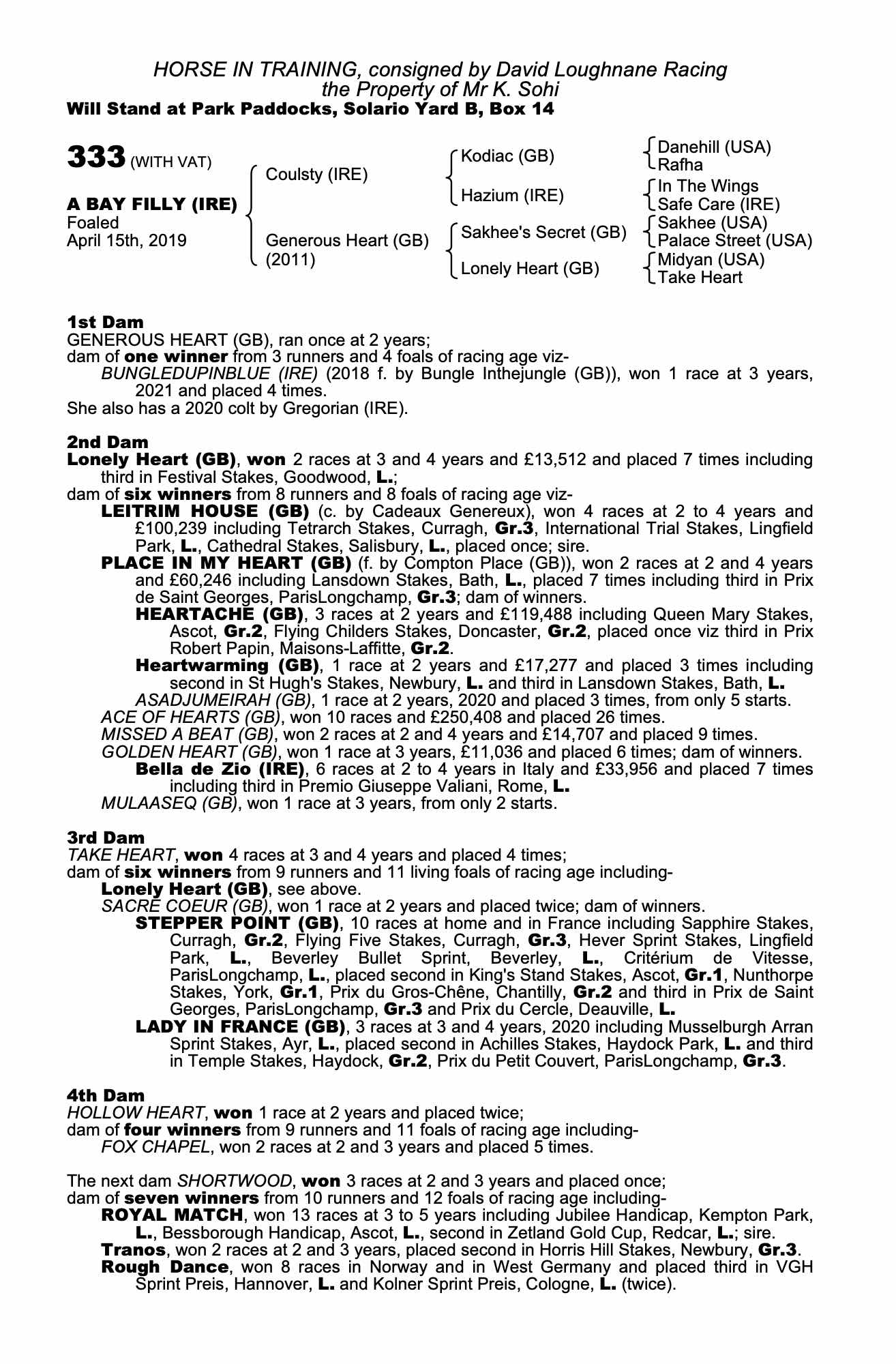 Consignor: David Loughnane Racing