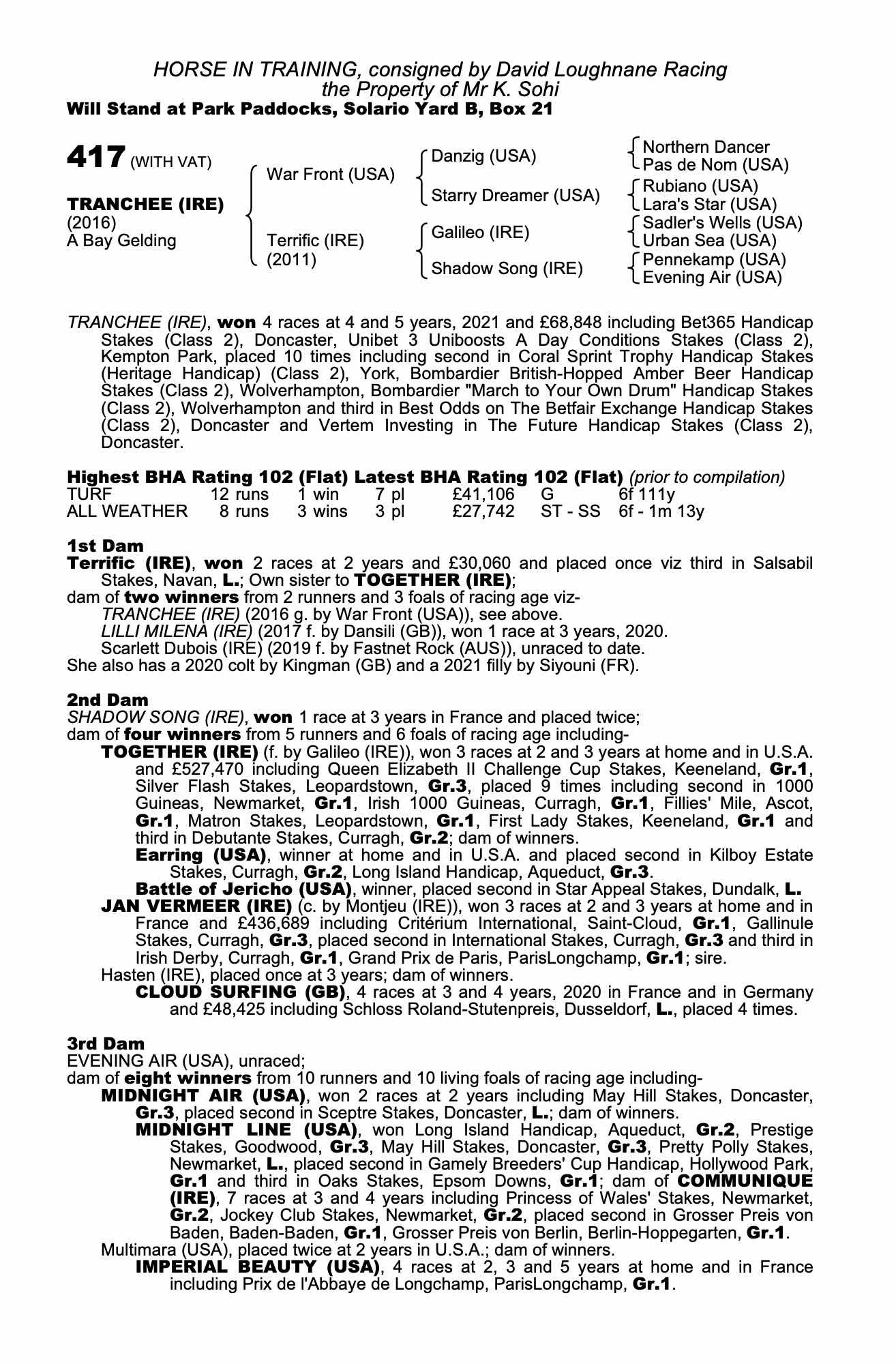 August Sale 2020 lot 166, David Loughnane Racing=>Vendor 35,000 gns