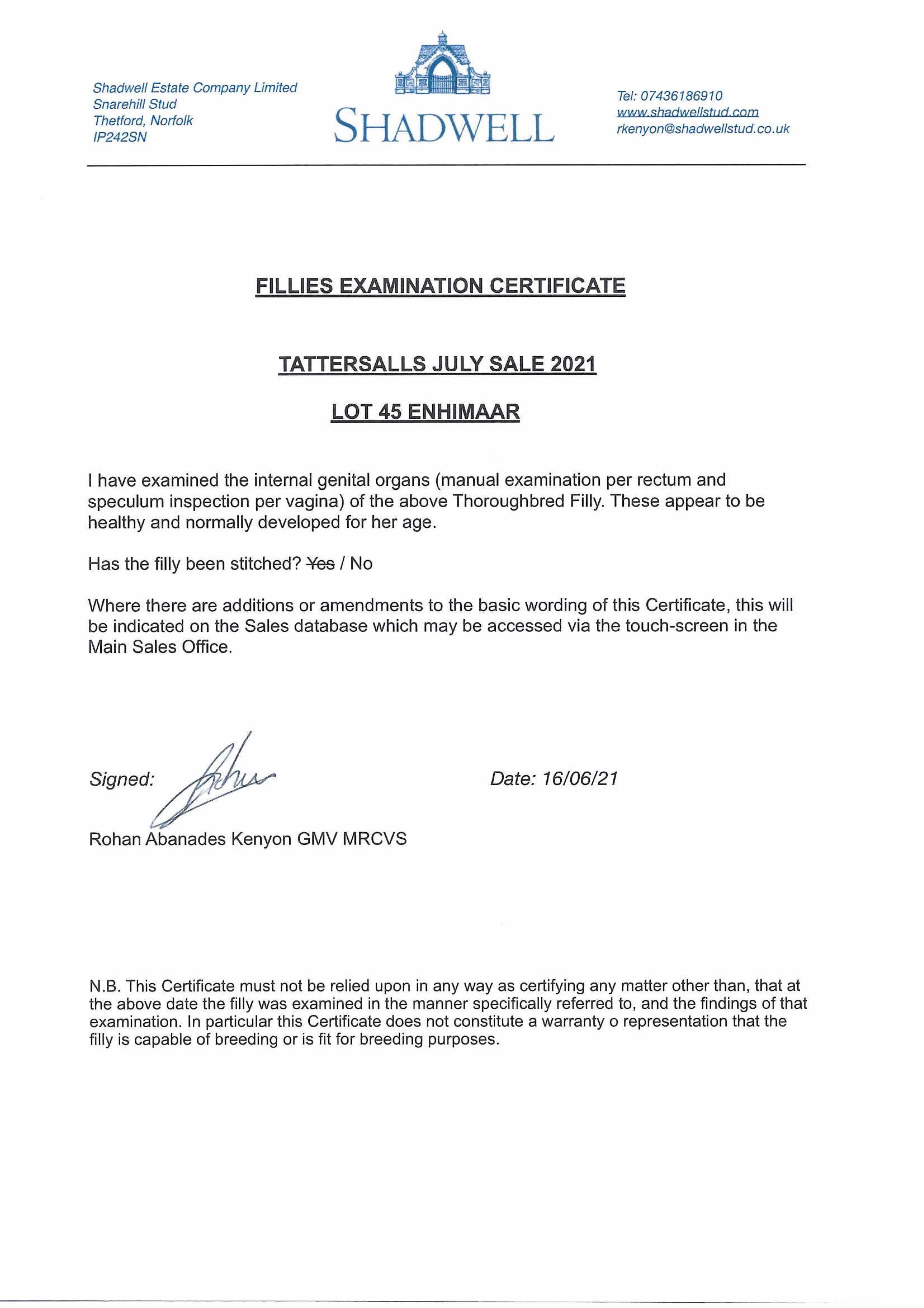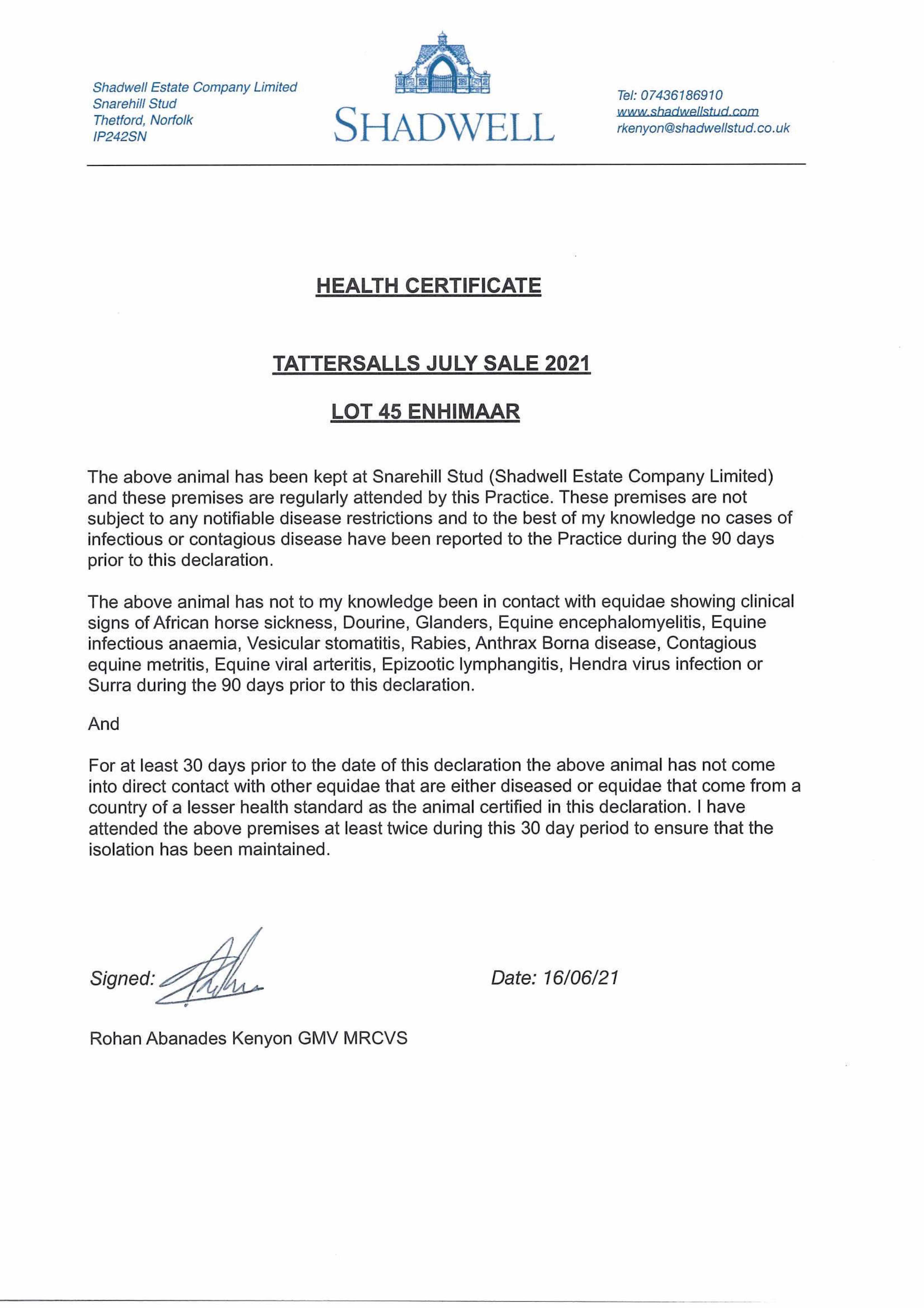 August Sale 2020 lot 616 Motanaamy (IRE) (G.), Shadwell Stud=>Caruso Vincenzo 6,500 gns