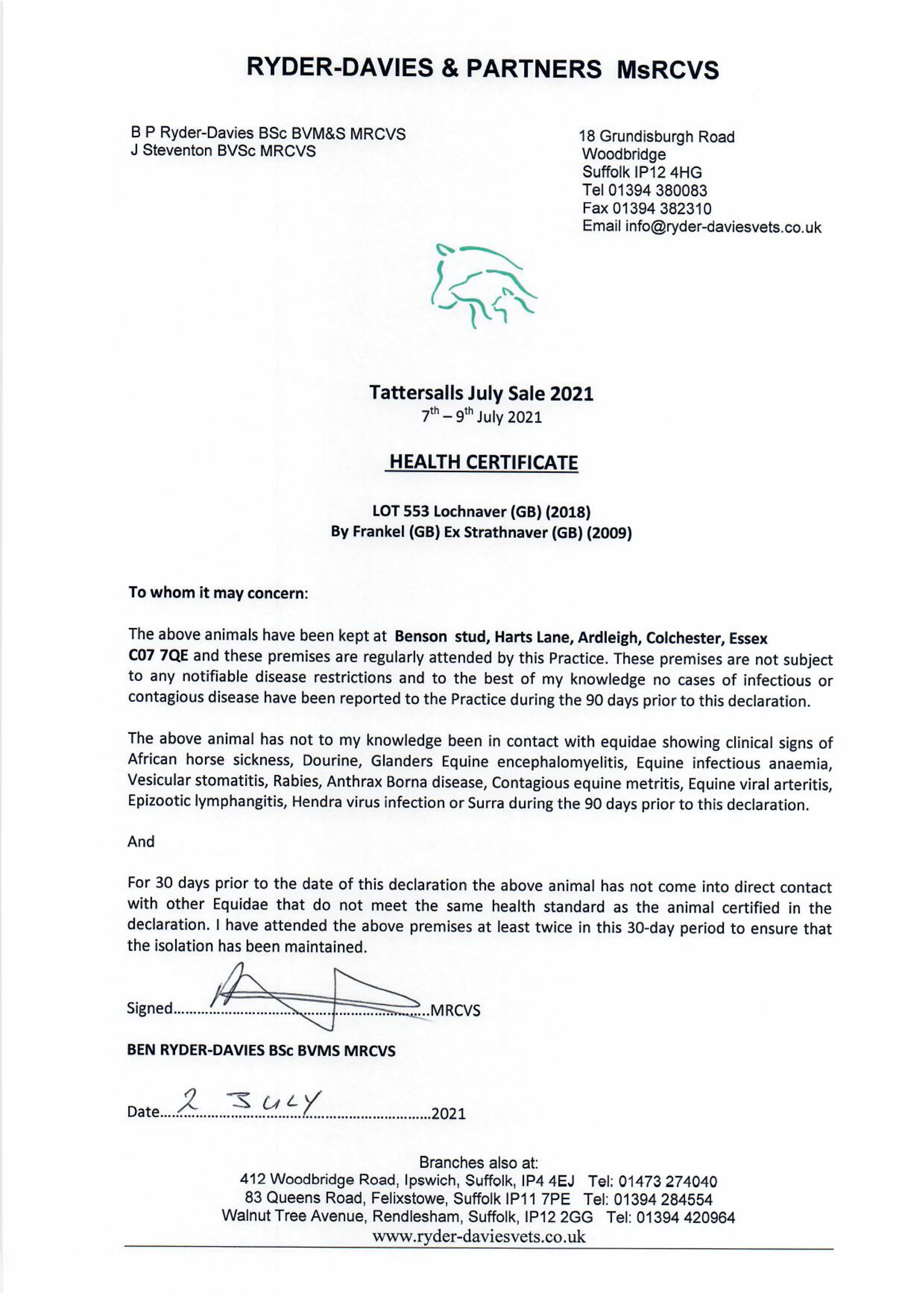 Consignor: Somerville Lodge Ltd. (W. Haggas), Agent
