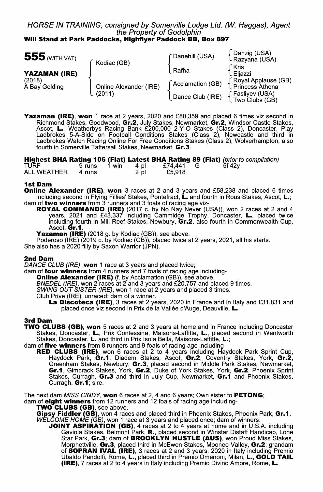 Consignor: Somerville Lodge Ltd. (W. Haggas), Agent