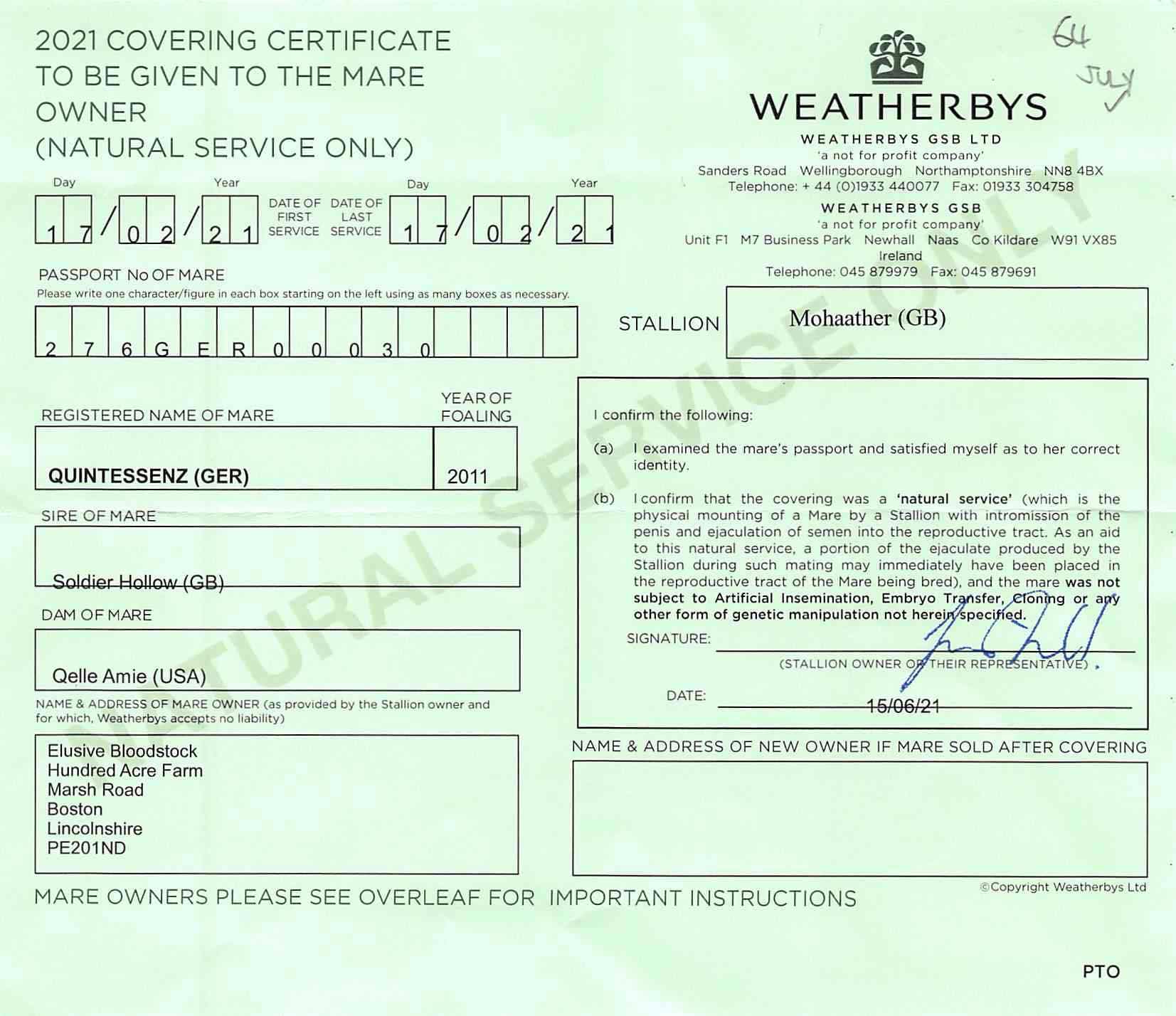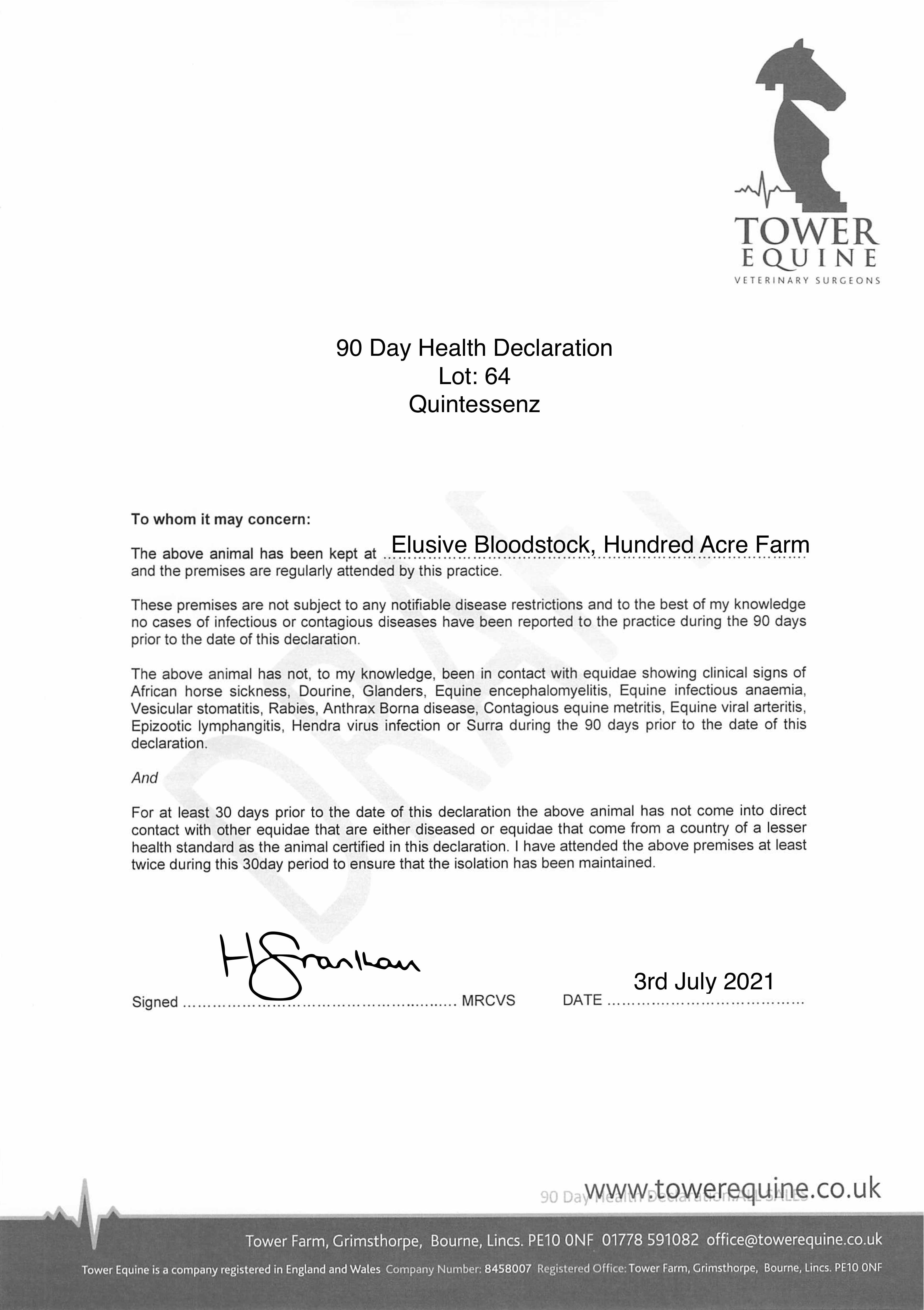 Consignor: Hundred Acre Farm