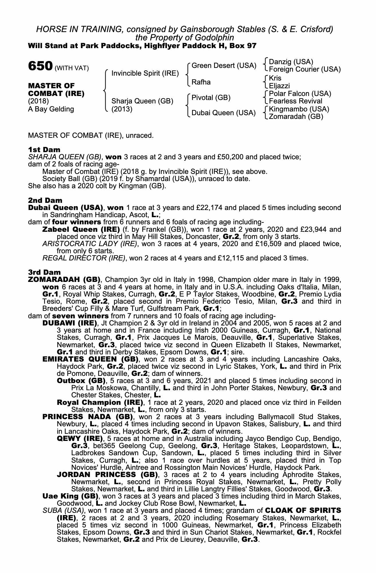 Consignor: Gainsborough Stables (S. & E. Crisford)