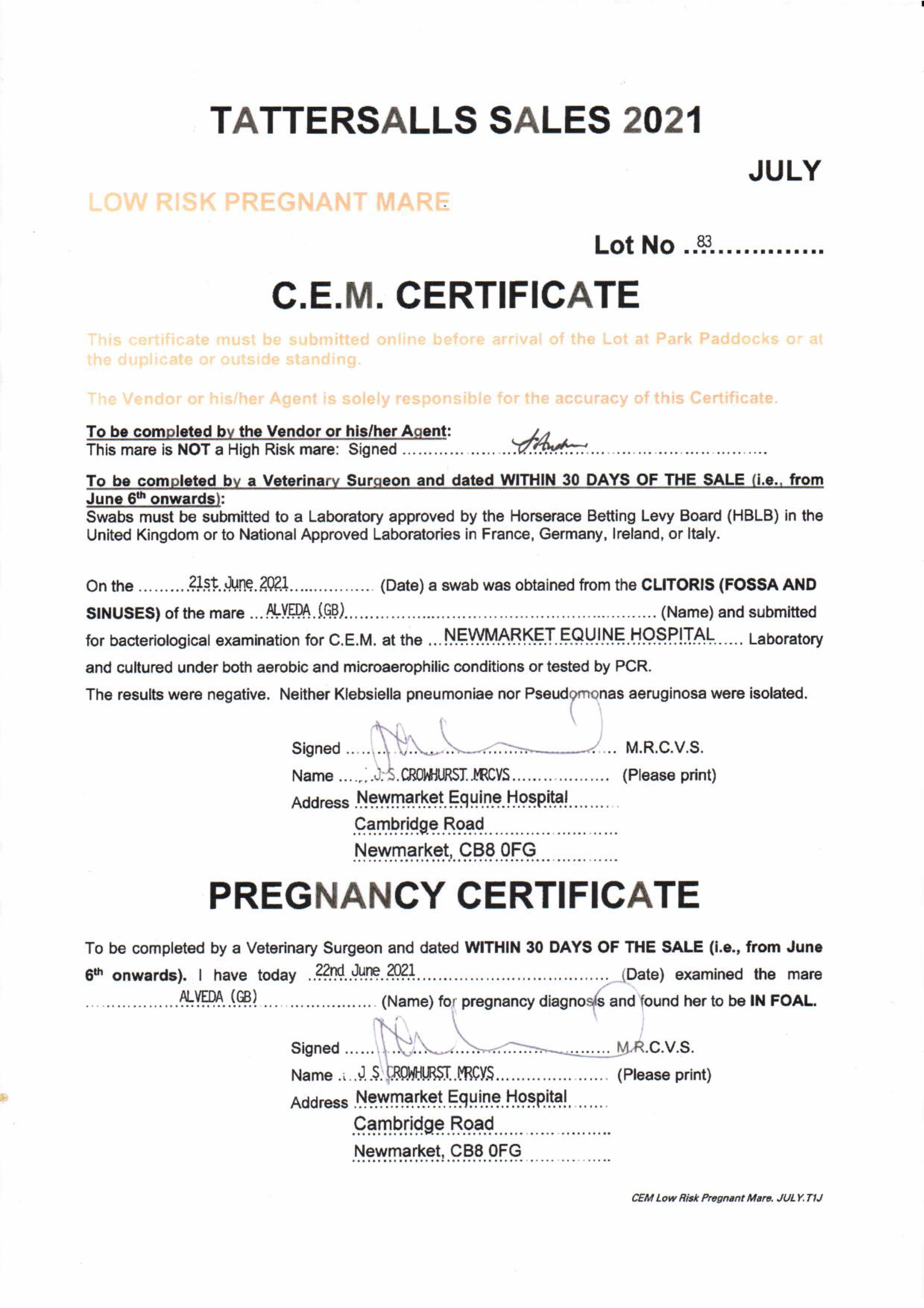 Online Sale - 17th September 2025 lot 161, Willow Wood Stud Ltd.=>H D syndicate 1,200 gns