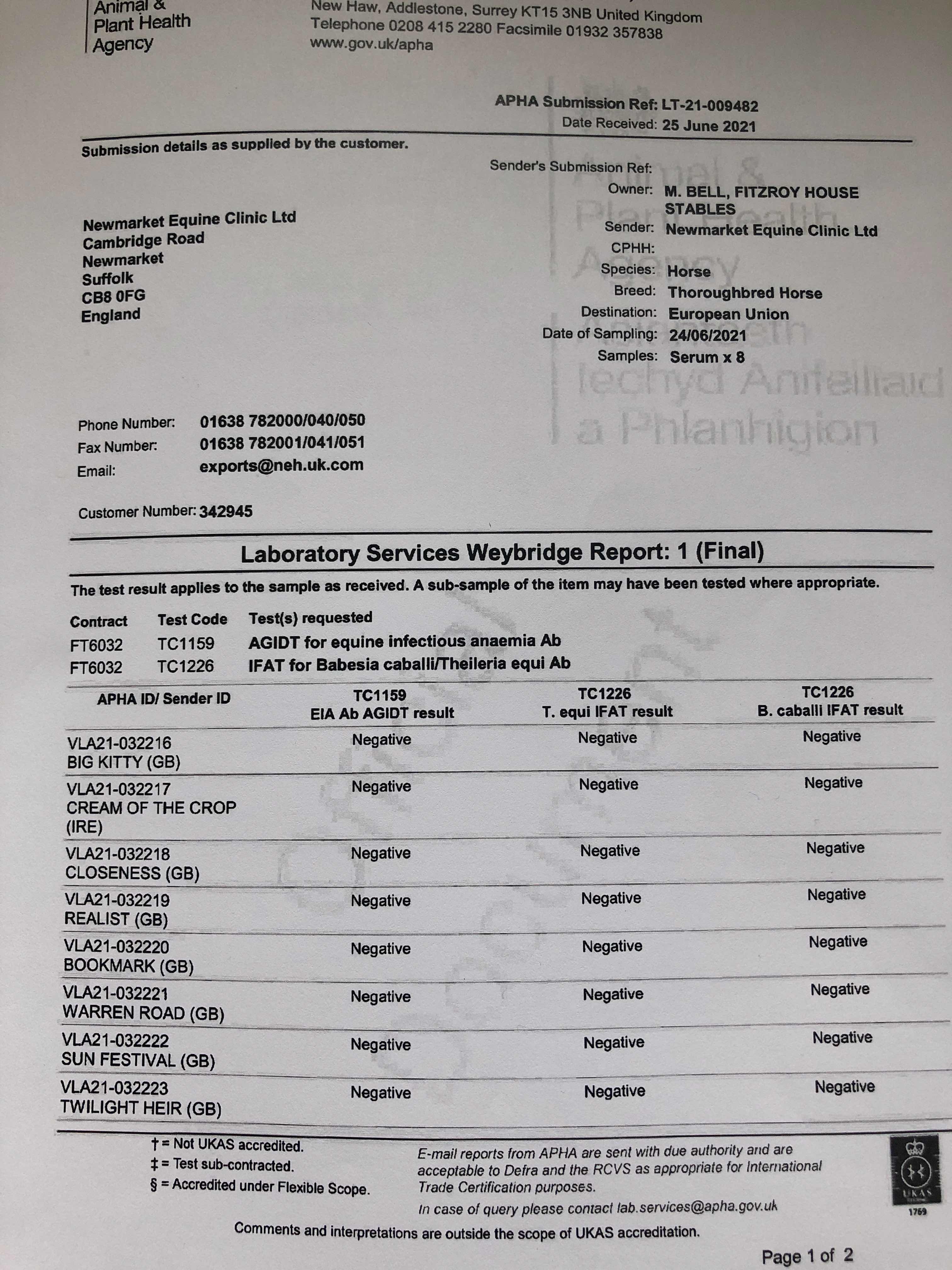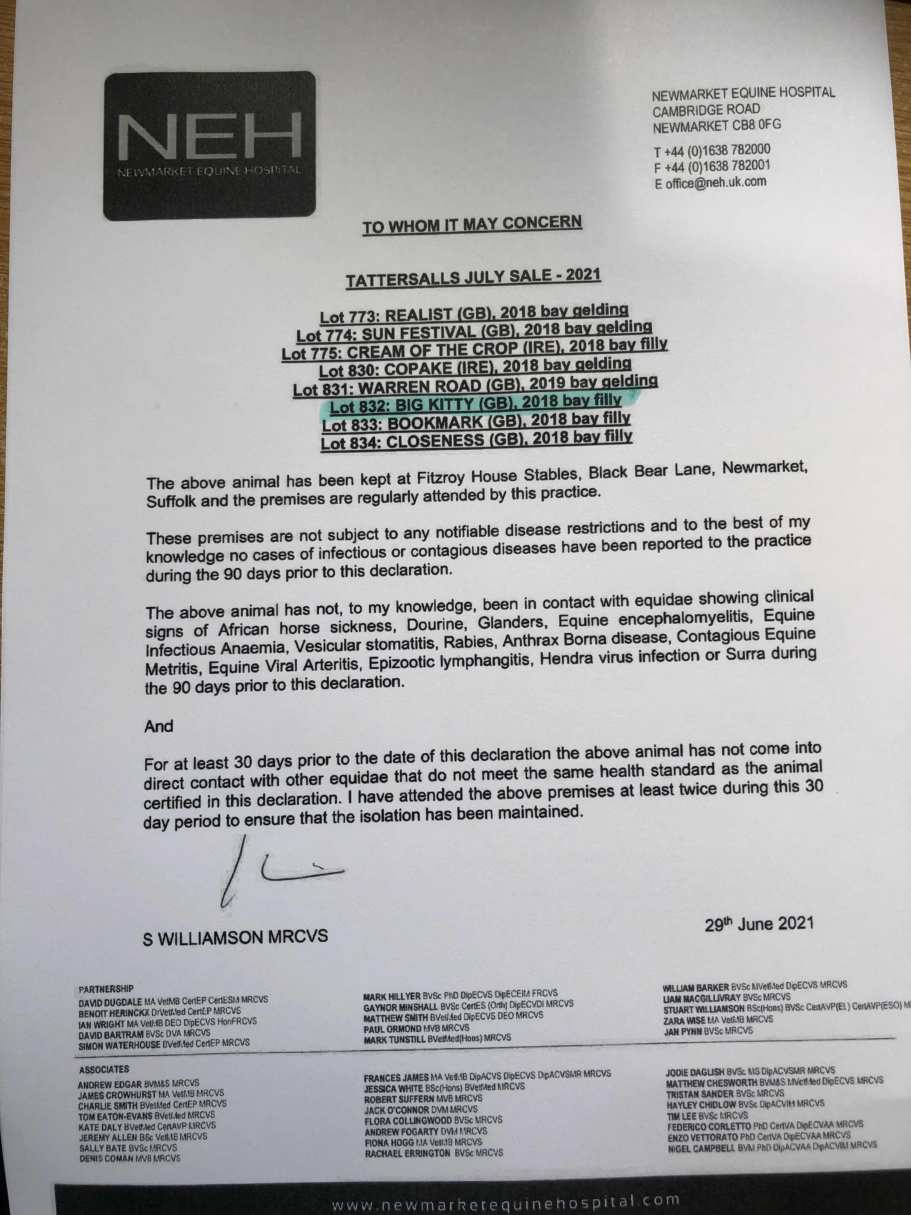 Guineas Horses in Training Sale 2019 lot 30 F. by Archipenko (USA) 2017, Fitzroy House (M. Bell)=>Naif Ghaith 1,500 gns