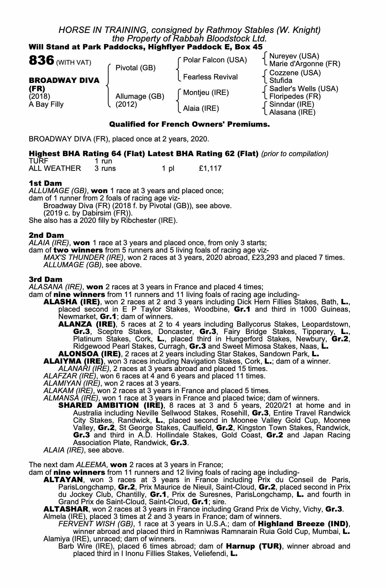 Consignor: Rathmoy Stables (W. Knight)