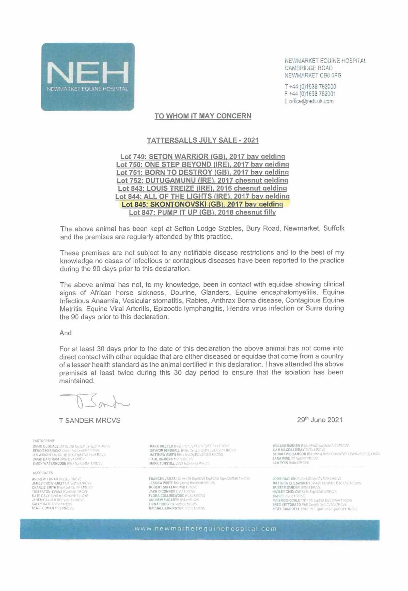July Sale 2023 lot 653 Savanna King (GB) (C. by Roaring Lion (USA)), Jamie Railton (Agent)=>Trevor Milner 60,000 gns