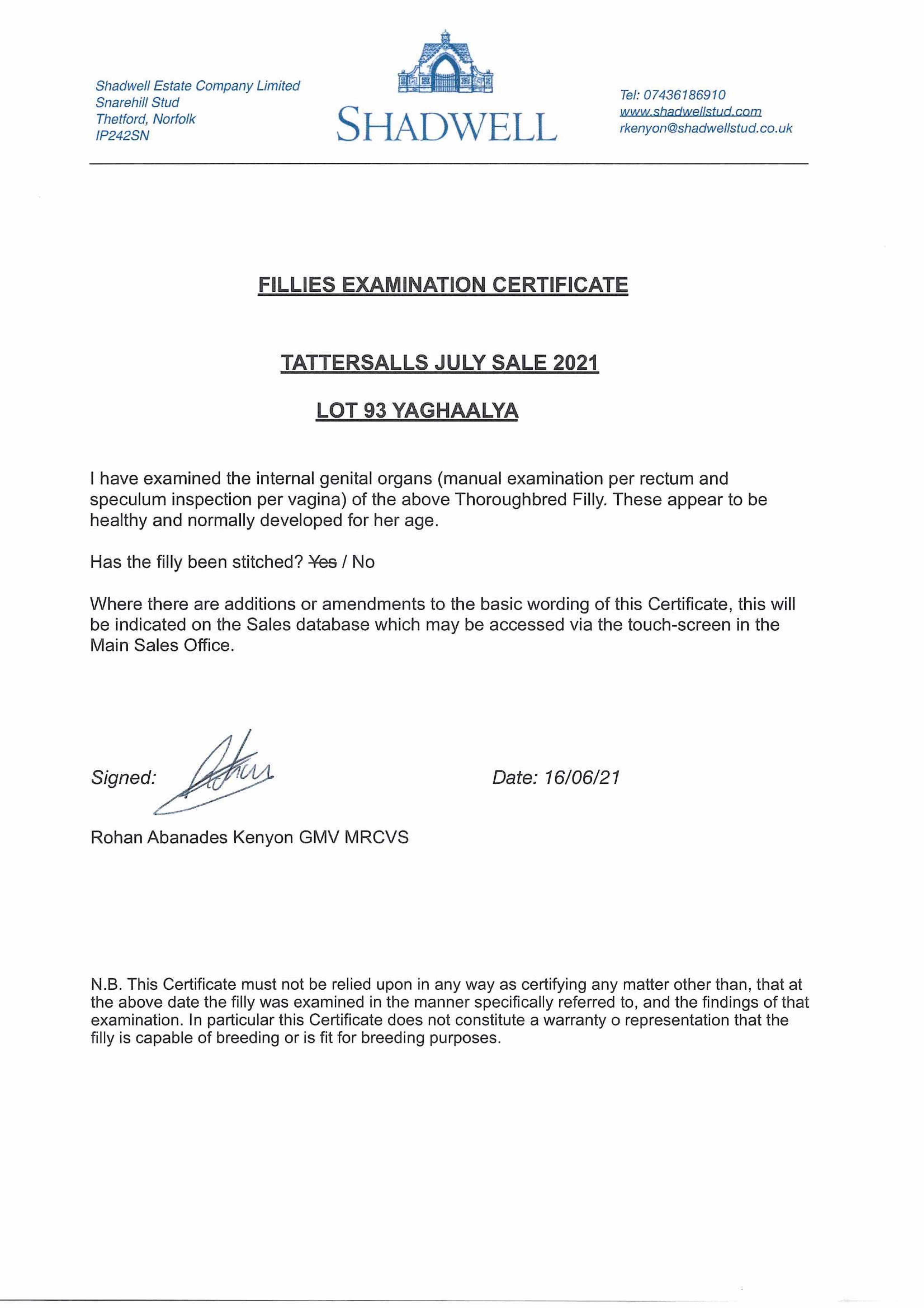 December Mare Sale 2010 lot 1994 Lathaat (GB) (F. by Dubai Destination (USA)), Shadwell Stud=>On The Brink Farm 3,500 gns