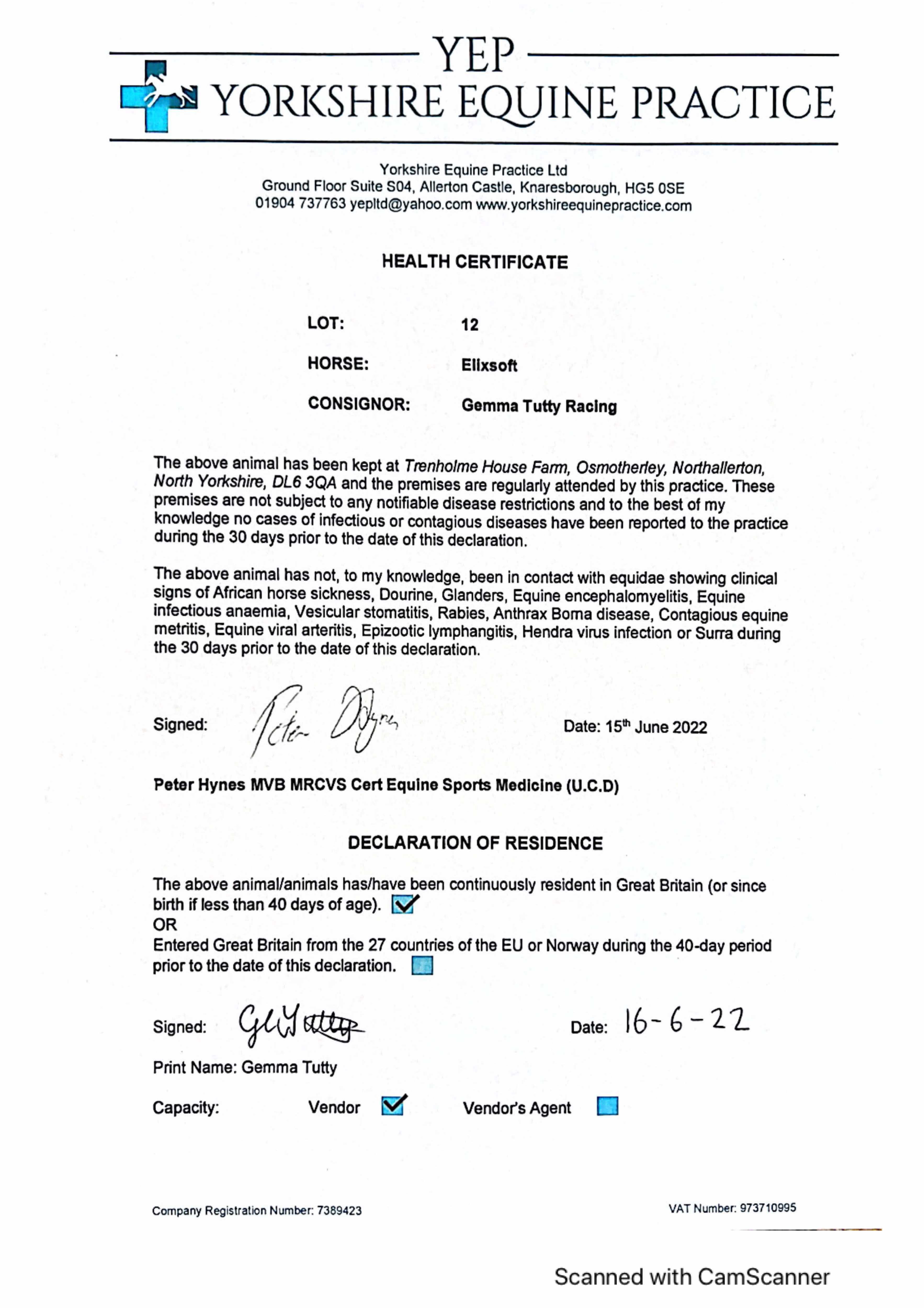 Consignor: Gemma Tutty Racing