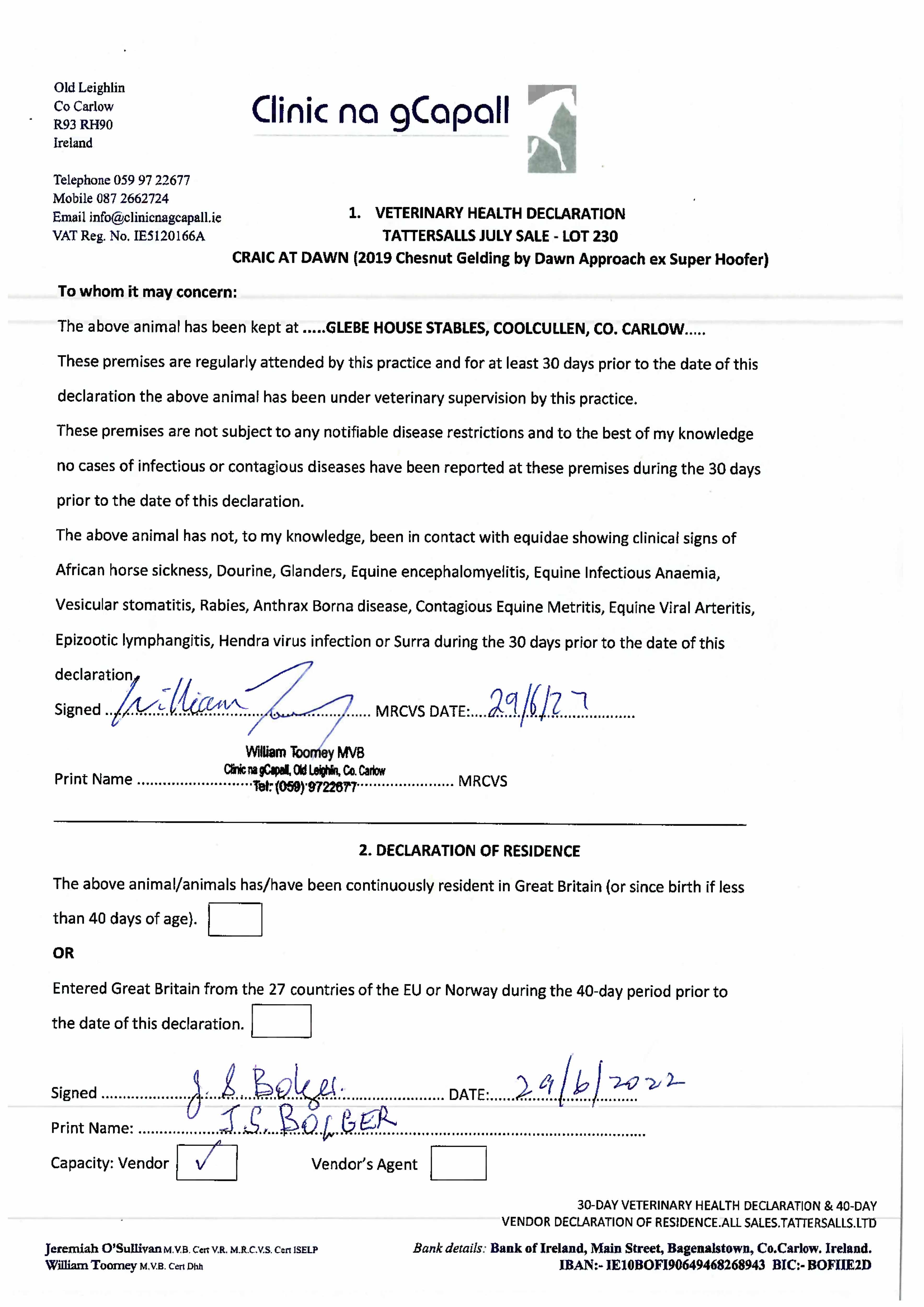 Consignor: Glebe House Stables, Ireland (J. S. Bolger)