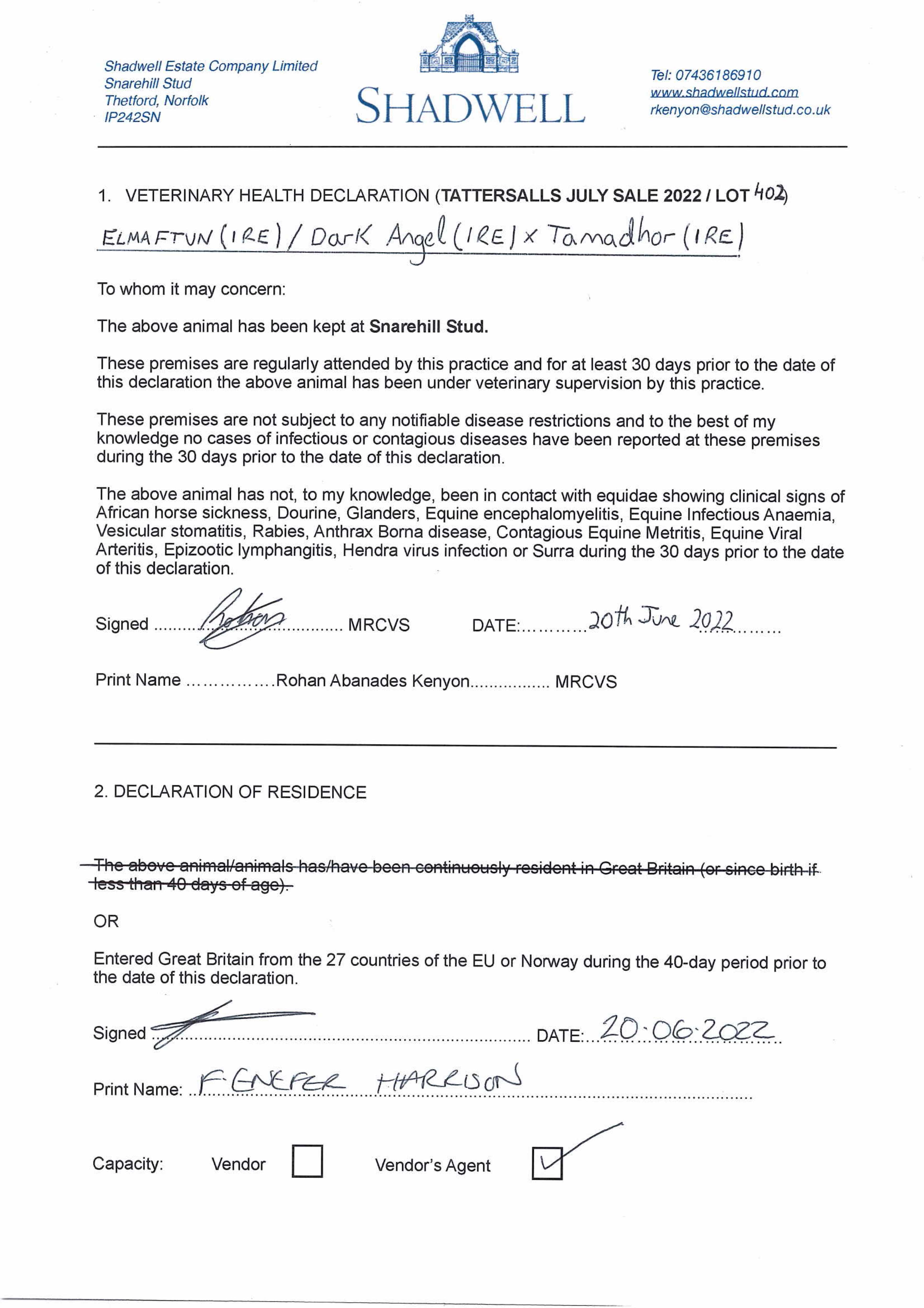 Ascot March Sale 2023 lot 76, Thorne Farm Racing (N. Hawke)=>J Smith £3,000
