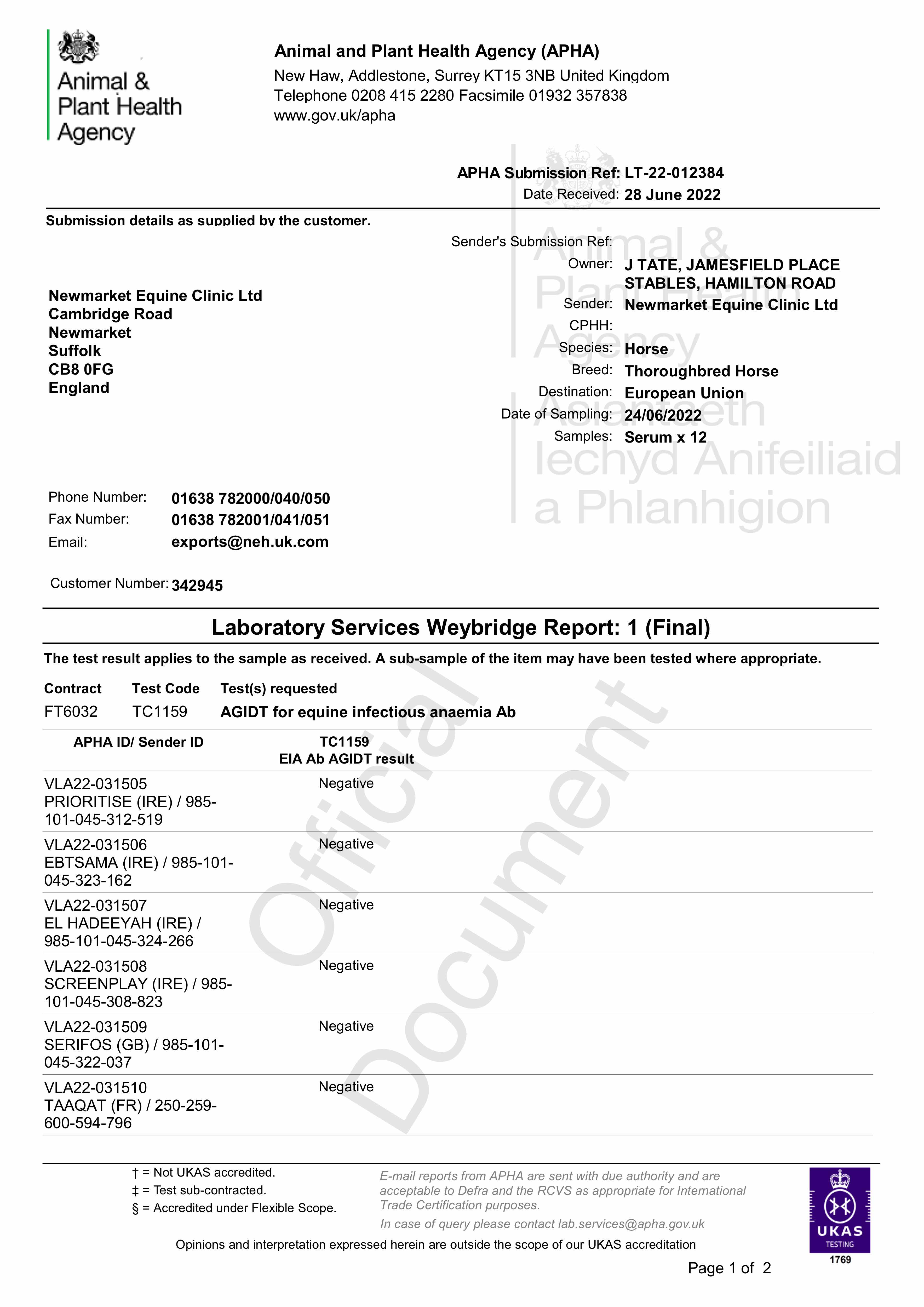 Consignor: Jamesfield Stables (J. Tate)