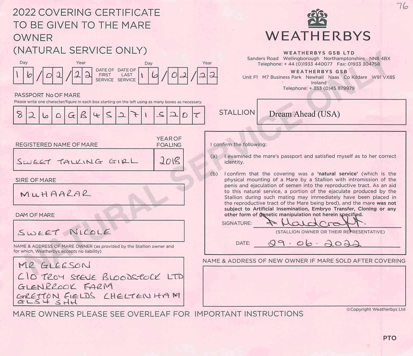 Consignor: Jamie Railton (Agent)