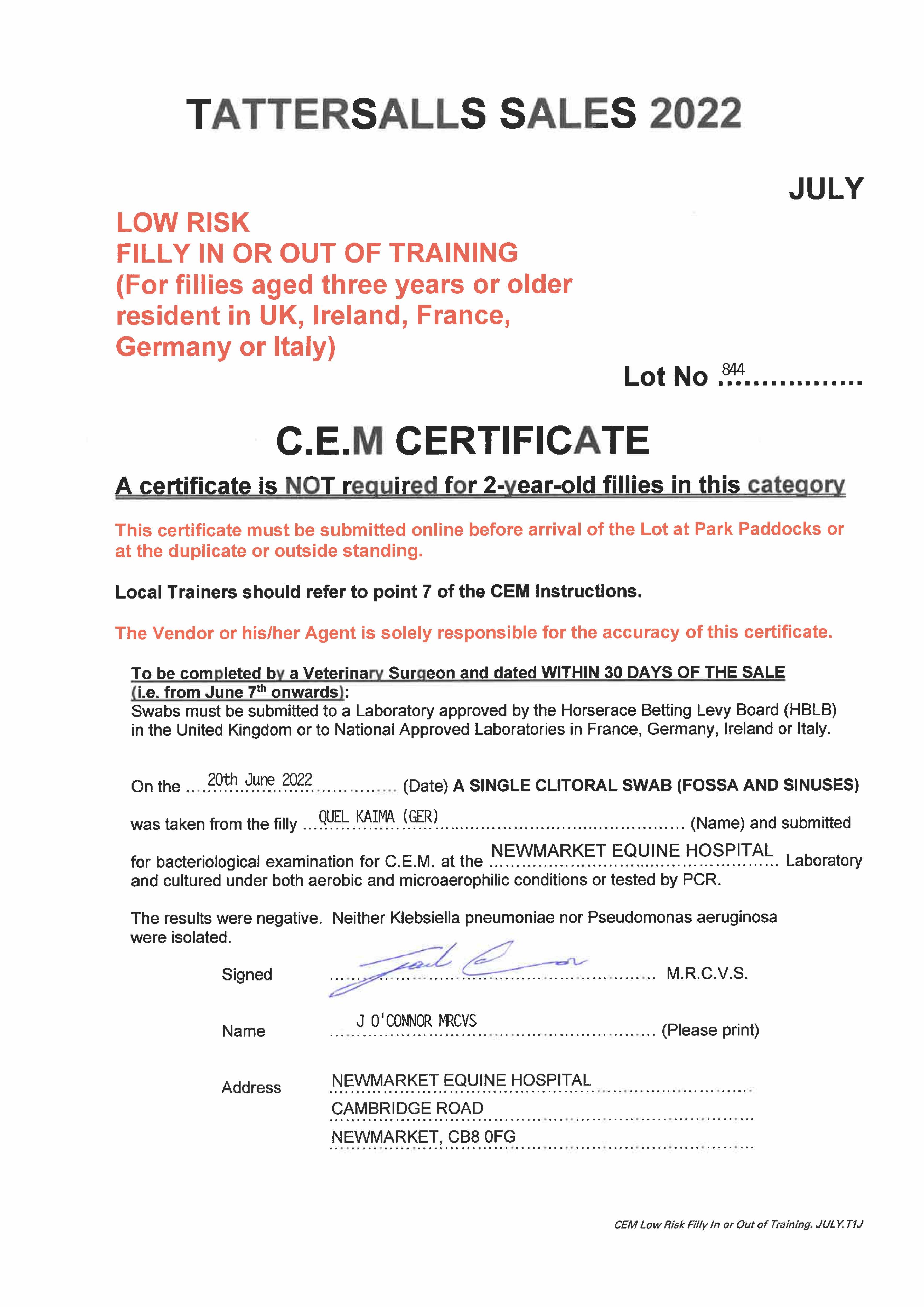 Consignor: Rathmoy Stables (W. Knight)